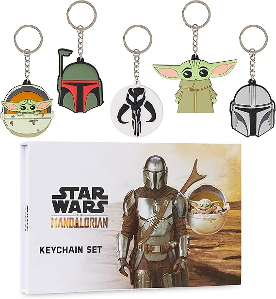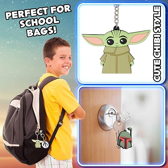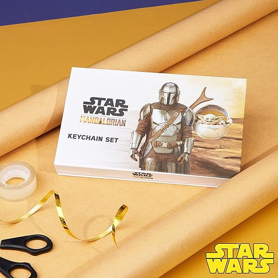 - Ten zestaw breloków Mandalorian lub Stitch jest dostarczany z szeregiem breloczków do kluczy z postaciami, starannie zapakowanych w pudełko tematyczne, które idealnie nadaje się do przechowywania lub prezentowania. Każdy brelok z postaciami jest wykonany z wytrzymałego materiału gumowego i przymocowany do stabilnego metalowego pęku kluczy