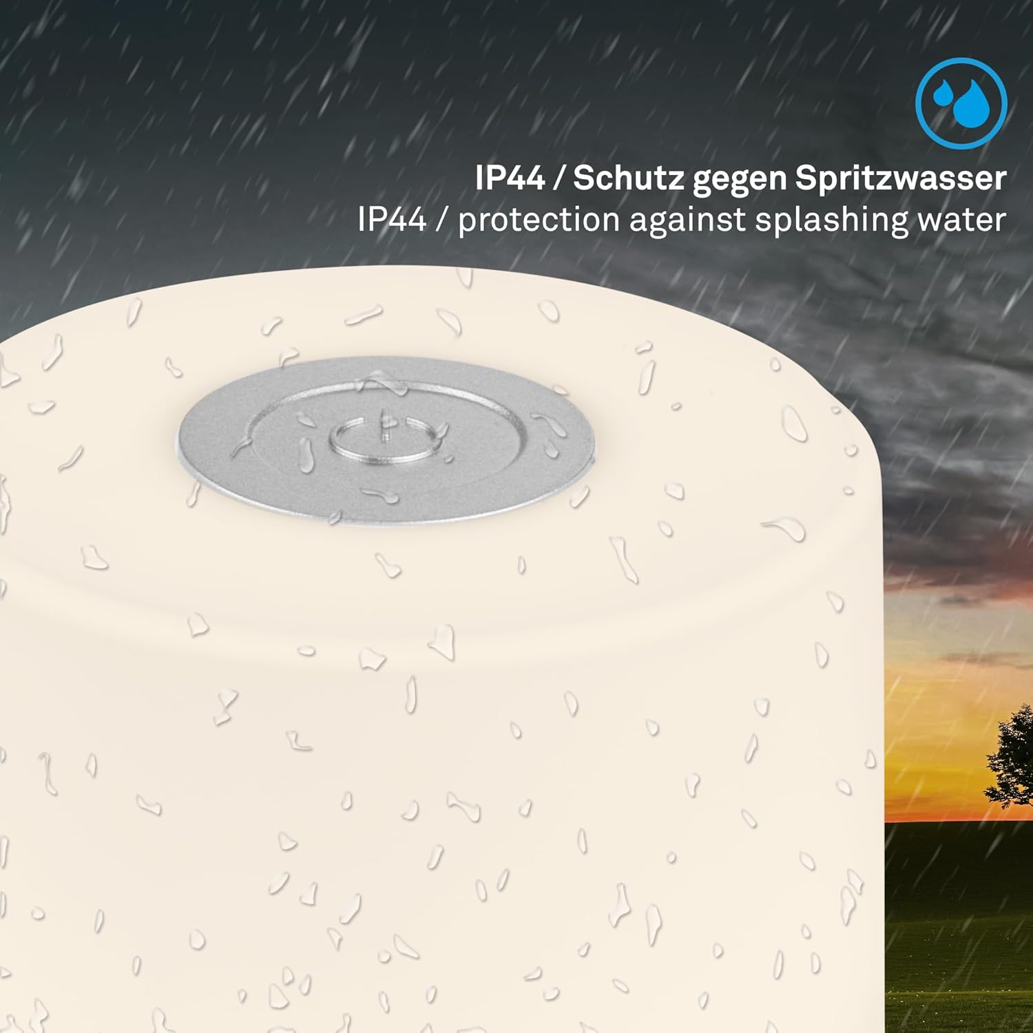Ciepłe światło o temperaturze 2700 K tworzy przytulny klimat na balkonie, tarasie czy w sypialni. Konstrukcja IP44 chroni przed wodą rozbryzgową, co czyni ją idealną na kemping.