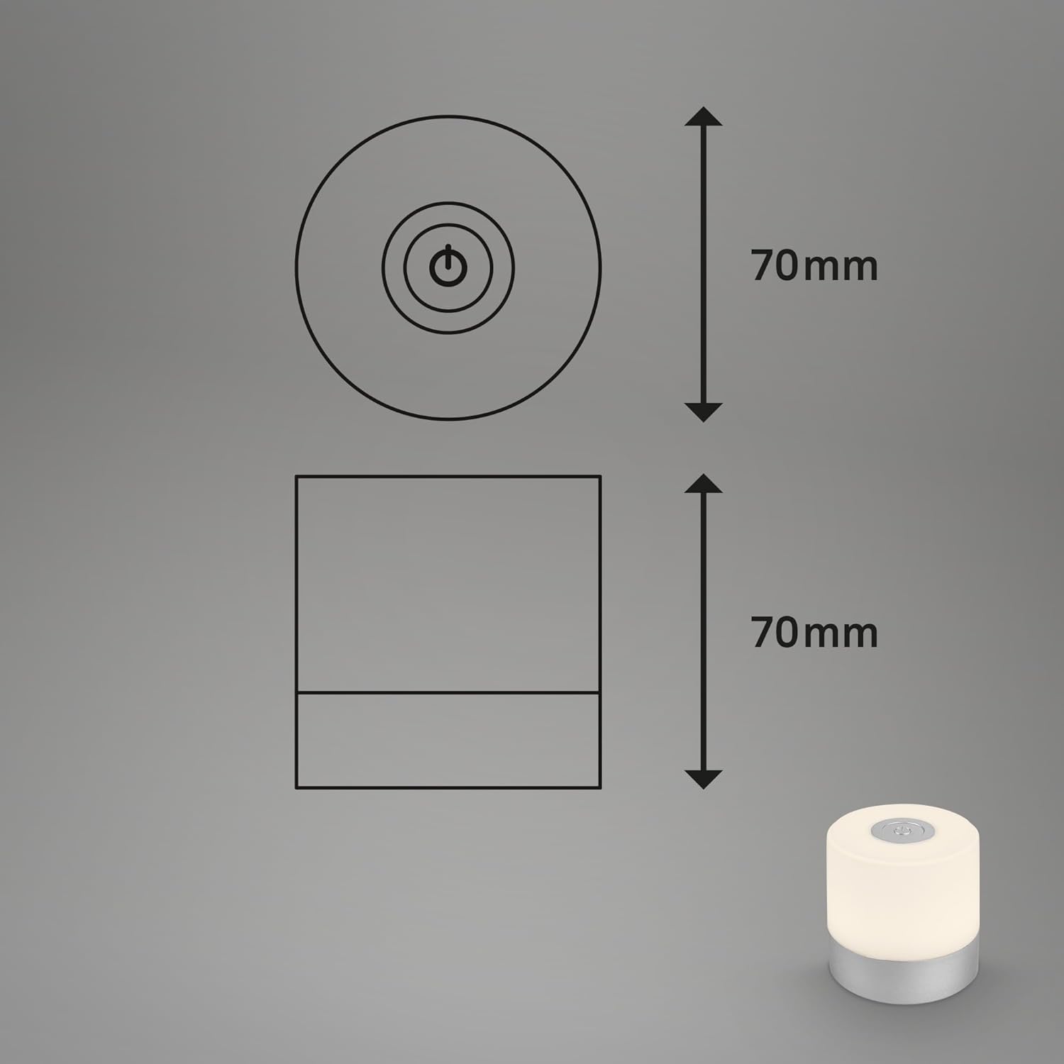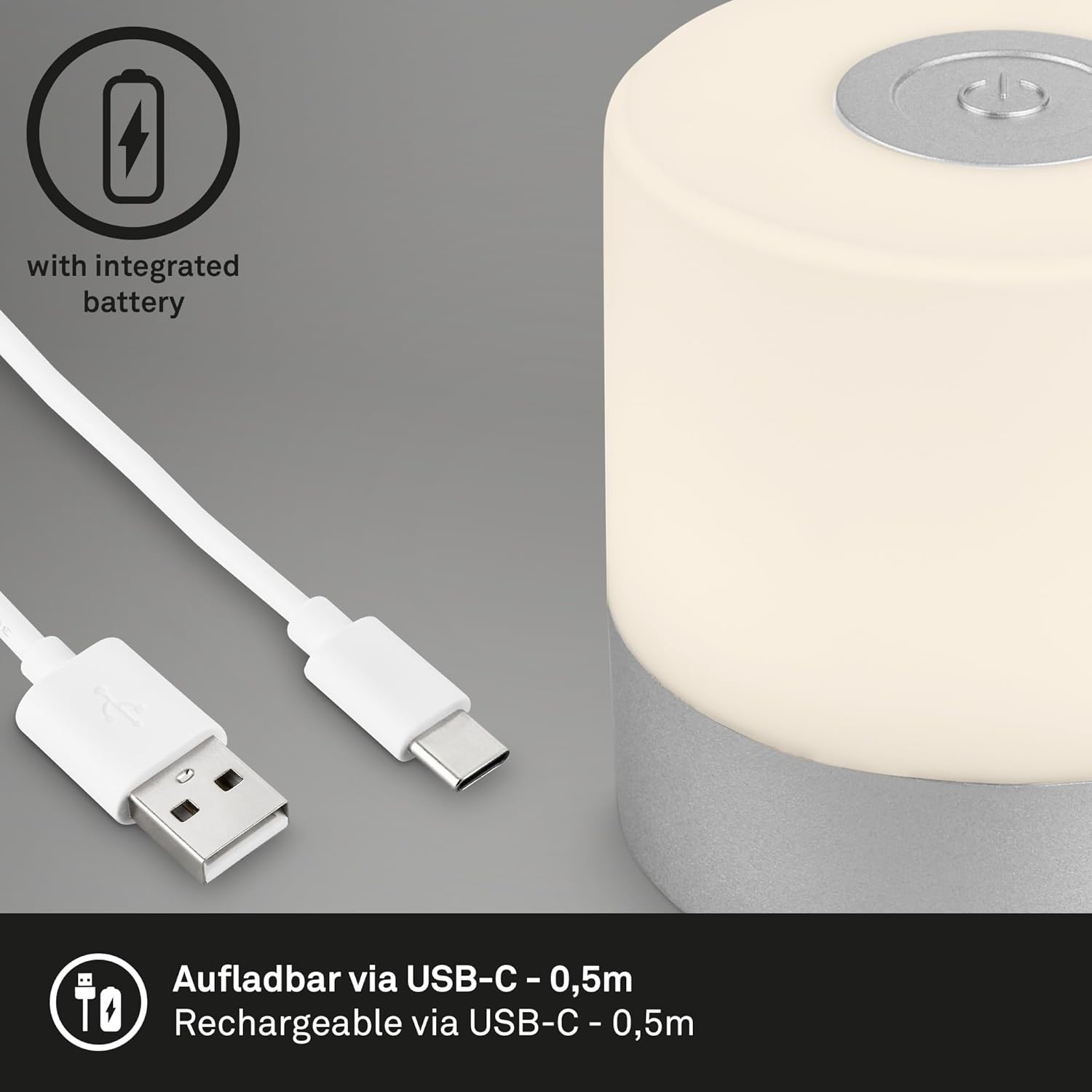 Ładowanie odbywa się wygodnie przez kabel USB-C, zawarty w zestawie. Kompaktowe wymiary 70x70 mm pozwalają na umieszczenie lampy w niemal każdym miejscu.✅ Marka: BRILONER ✅ Producent: Briloner Leuchten ✅ Numer modelu: 7461014 ✅ Wymiary: 7 x 7 x 7 cm ✅ Waga: 100 g ✅ Styl: okrągły ✅ Kolor: srebro ✅ Materiał: Tworzywo sztuczne ✅ Liczba lamp: 1 ✅ Dołączone komponenty: Kabel USB-C ✅ Funkcja specjalna: Możliwość przyciemnienia ✅ Zasilanie: Zasilanie bateryjne ✅ Typ instalacji: Montowanie podłogowe ✅ Typ żarówki: LED ✅ Strumień świetlny: 150 lumenów ✅ Moc: 2 WEBPP800, SZNW