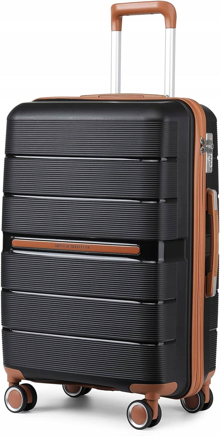 British Traveller Walizka z Twardą Bagaż PP Materiał Walizki Podróżna 4 Kółka, 66x44x28,5cm, Czarny.