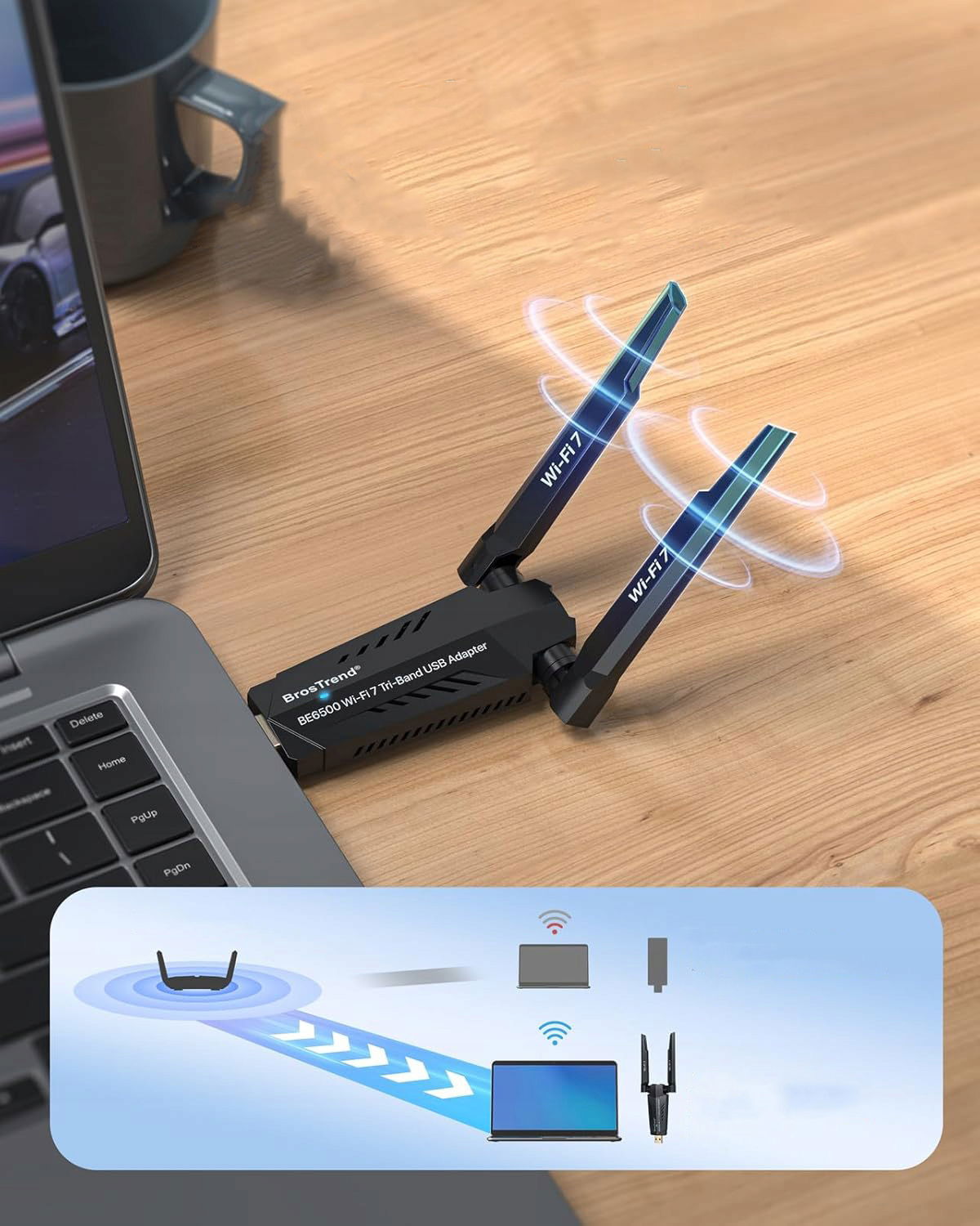 BrosTrend BE6500 WiFi 7 Adapter adapter USB WiFi 6 GHz + 5 GHz + 2,4 GHz
