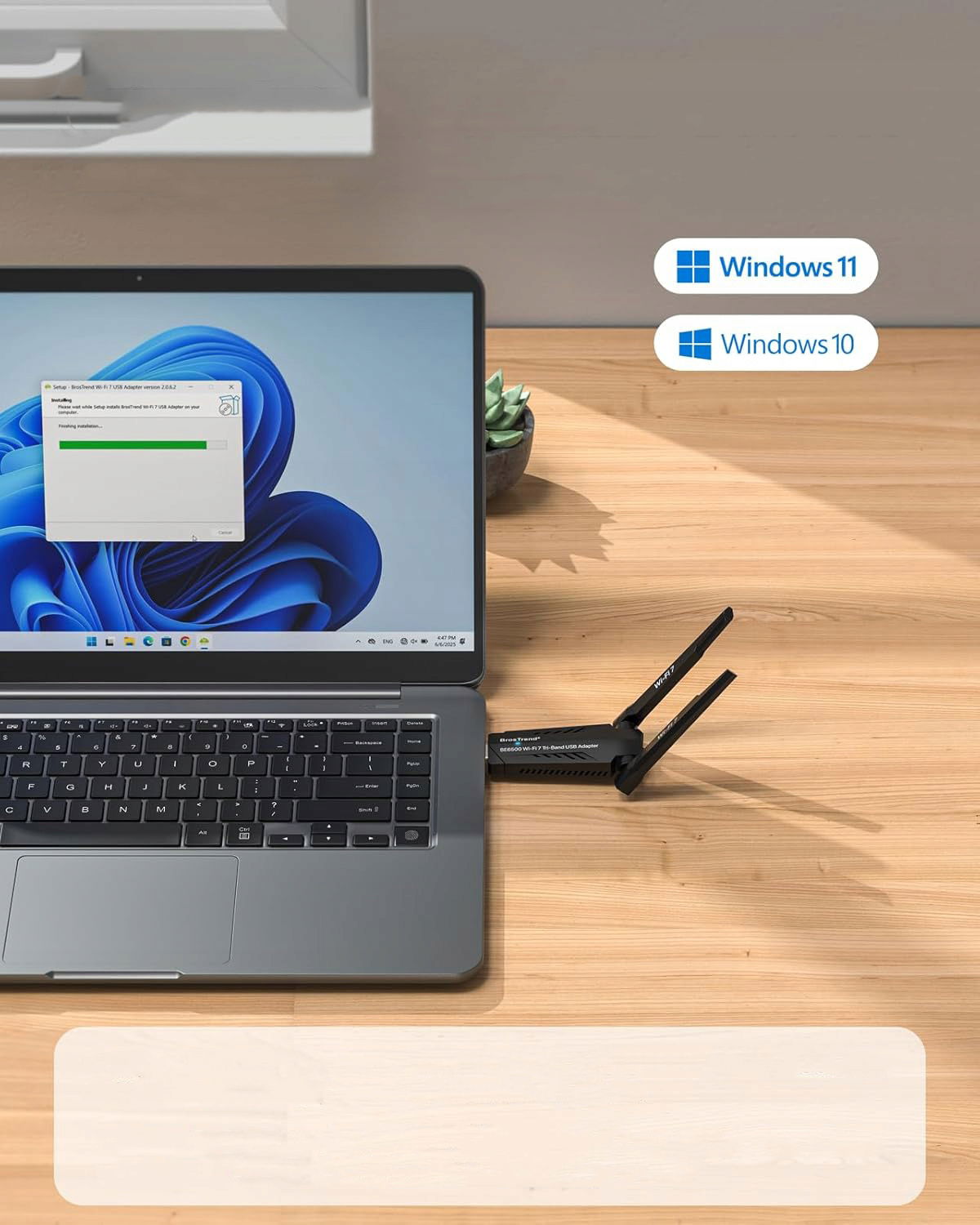 ⭐ Adapter USB WiFi 7 BrosTrend BE6500 – ultraszybkie połączenie trójpasmowe