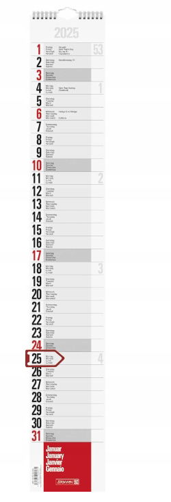 Brunnen kalendarz 2025 niemiecki kolumnowy, ścienny