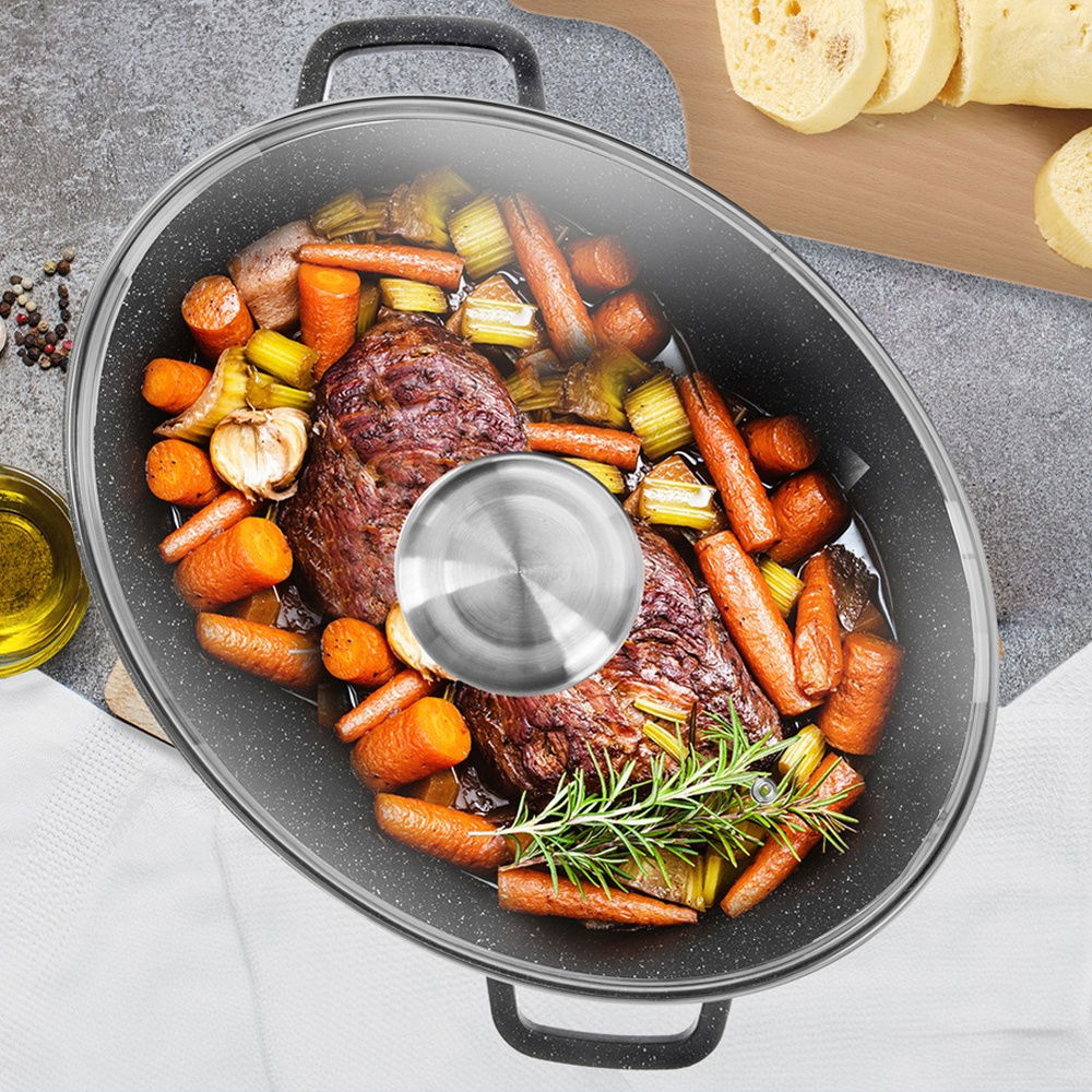 Owalna brytfanna z pokrywką szklaną. Brytfanna jest niezwykle funkcjonalna. Idealnie sprawdzi się do duszenia, pieczenia oraz gotowania potraw. Zestaw ten jest niezwykle przydatny w każdej kuchni.