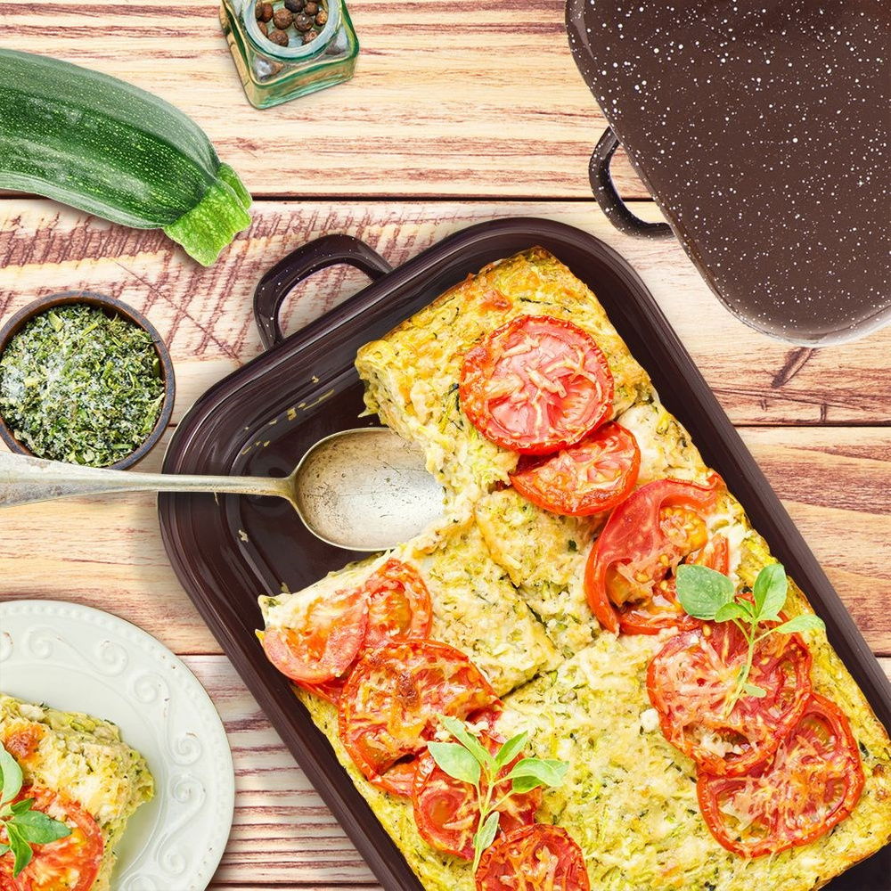 Emaliowana brytfanna z pokrywką, znajdzie szerokie zastosowanie w kuchni. Pokrywa z uchwytami może pełnić również rolę naczynia do zapiekania lub serwowania, zyskujemy wówczas dwa naczynia bez przykrycia. Naczynia emaliowane mogą posiadać niedoskonałości produkcyjne, które są naturalne dla tego typu naczyń: wybrzuszenia, niesymetryczne nadruki itp. Nie wpływają one na jakość produktu i przygotowywanych potraw, a jedynie podkreślają ich metodę tradycyjnego wykonania.