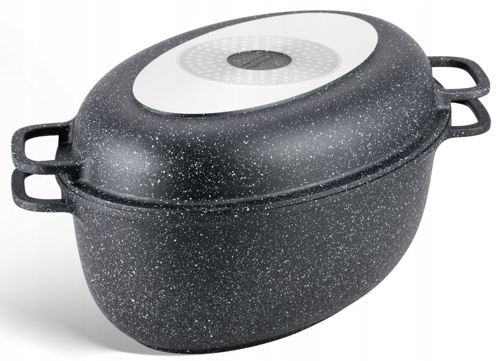 Brytfanna ceramiczno-marmurowa wykonana jest z trwałego stopu aluminium z powłoką marmurową, równomiernie i szybko rozprowadza ciepło i jest prosta w czyszczeniu.