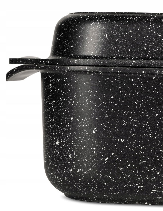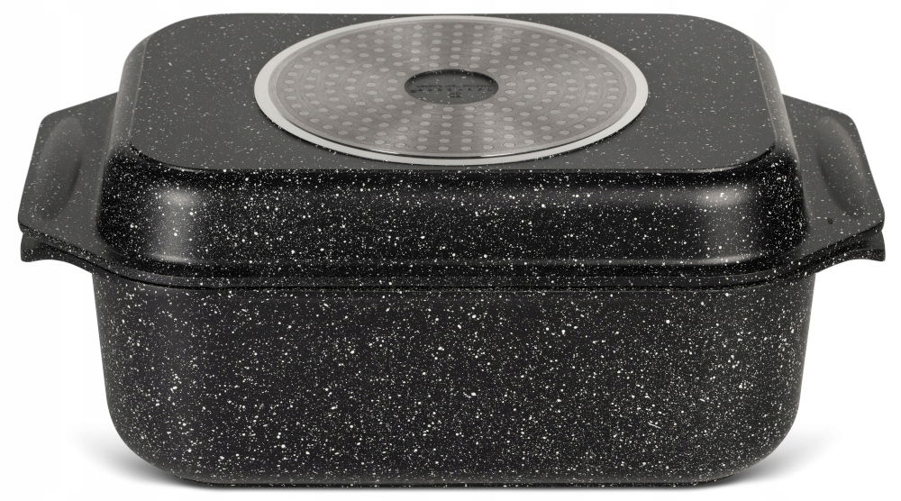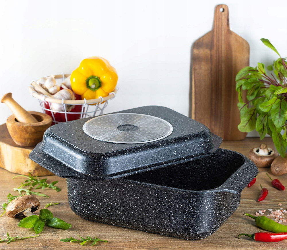 Zachwyca nie tylko wszechstronną funkcjonalnością, ale również swoim ekskluzywnym wyglądem. Marmurowa powłoka w modnych odcieniach, nowoczesny prostokątny kształt oraz dbałość o wszelkie detale sprawia, że brytfanna jest prawdziwą ozdobą każdego wnętrza kuchennego.