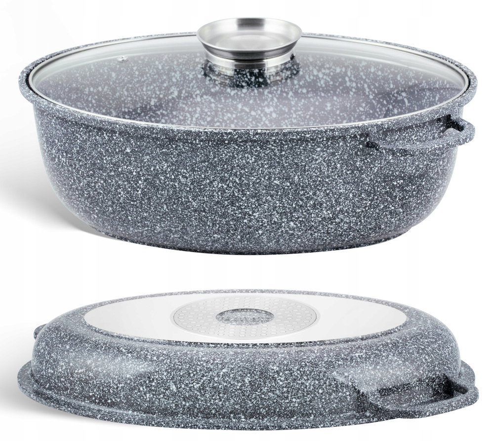 BRYTFANNA Marmurowa GĘSIARKA 8l 38cm Patelnia GRILLOWA 3w1 Garnek 4602