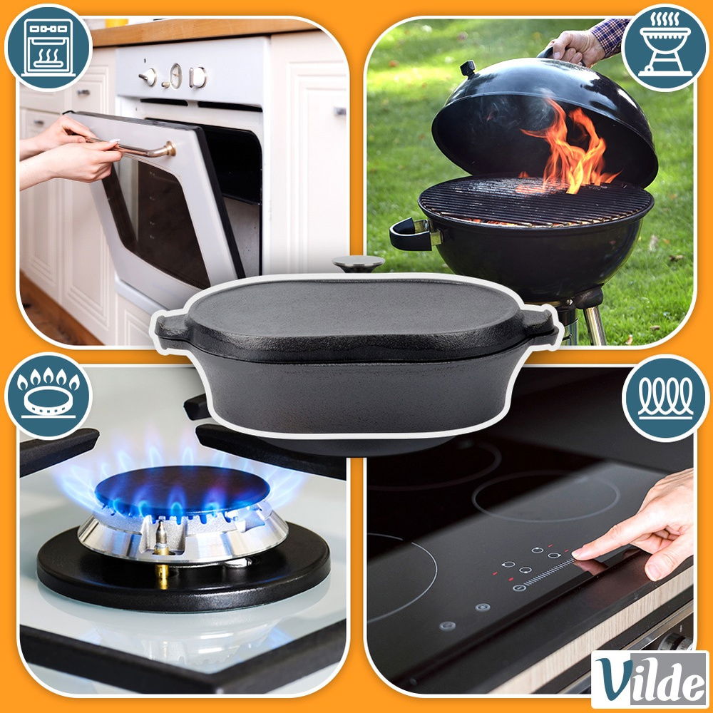 Brytfanna Żeliwna Brytfanka Garnek Naczynie do Pieczenia Patelnia Grill 2w1
