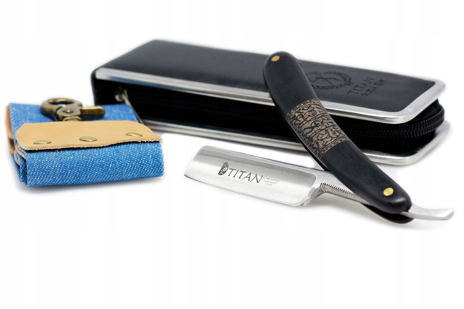 Zestaw zawiera: Brzytwa + Etui + jeans-owy pas do ostrzenia/polerowania