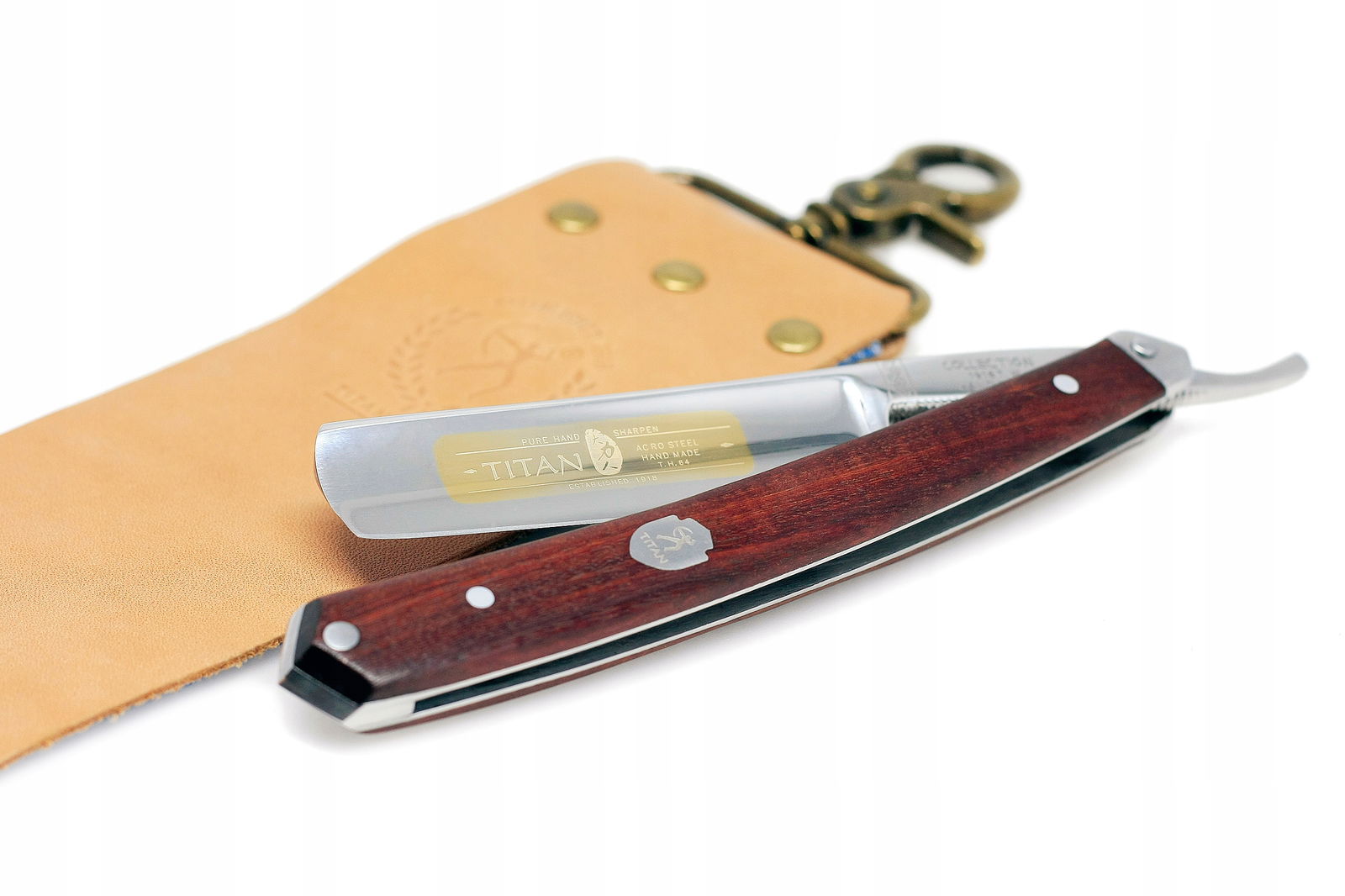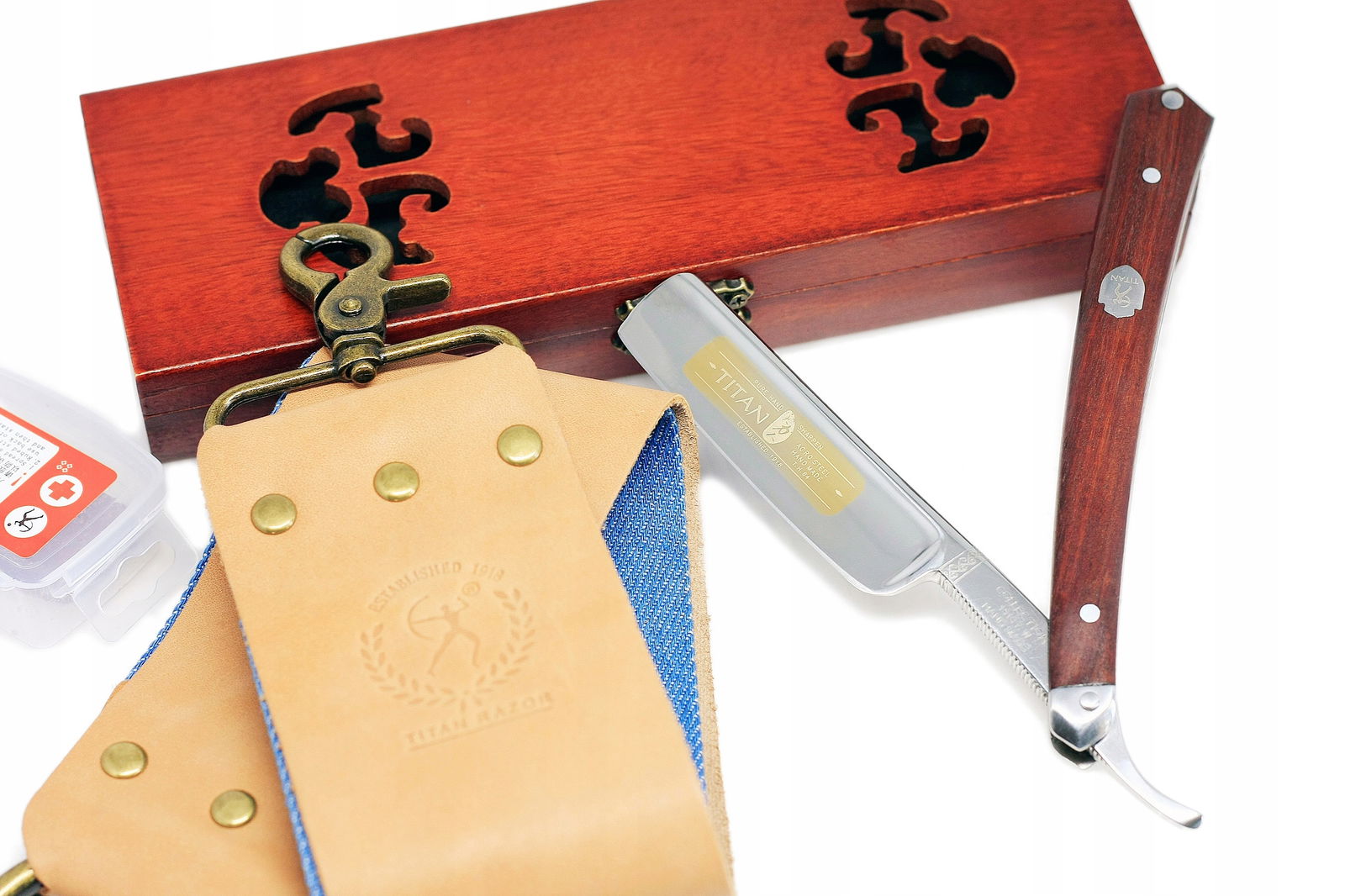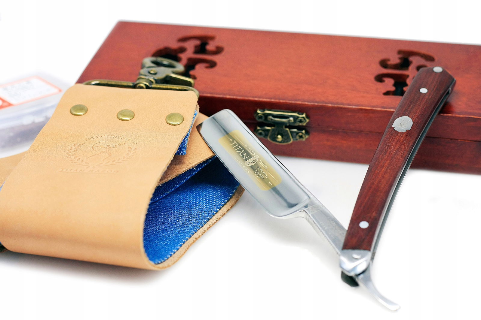 Brzytwa tradycyjna klasyczna do golenia TITAN PAS drewniane ETUI zestaw