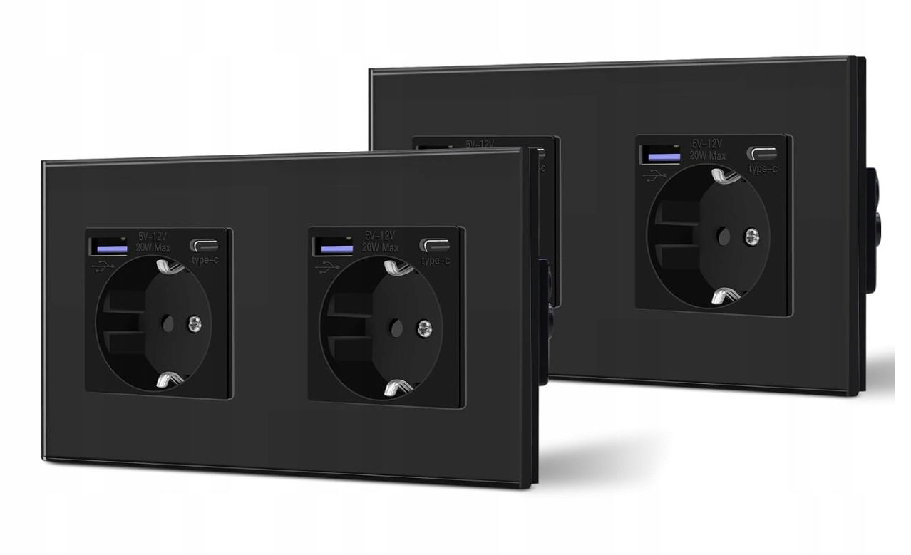 BSEED Gniazdko wtykowe ze szkła USBC 20 W ZESTAW DWÓCH PODÓWJNYCH GNIAZDEK