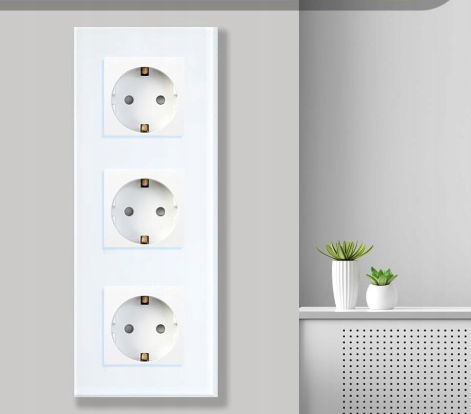 BSEED Gniazdo ścienne 3 standardowe gniazdka Schuko 16A 228 mm biała