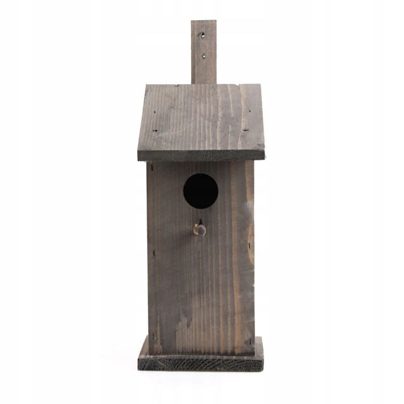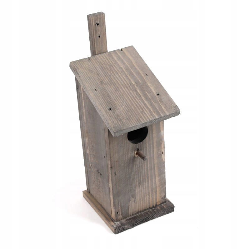 SZARA DREWNIANA BUDKA LĘGOWA DLA SZPAKA 14x14x30/35 cm