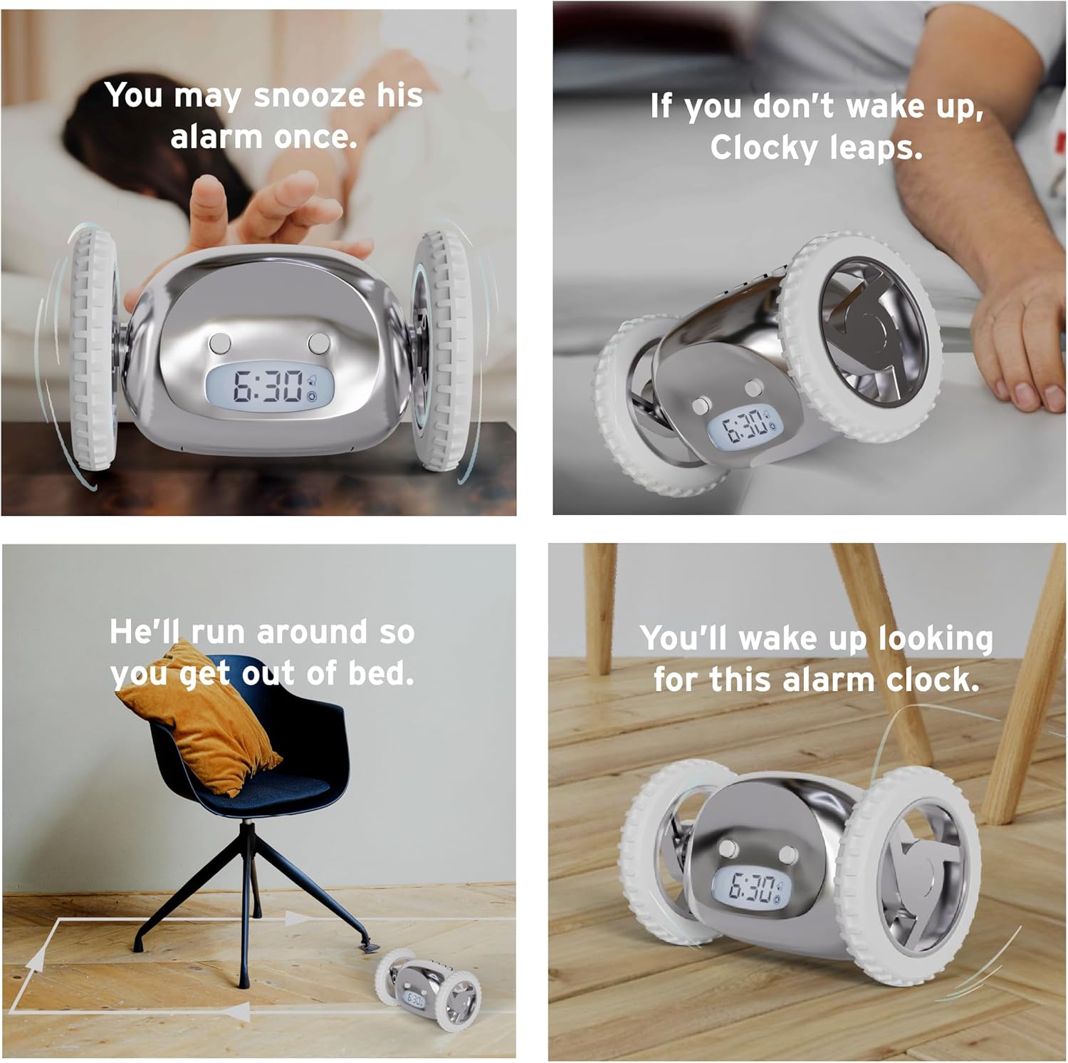 ✅ Biegnący i skaczący budzik: Clocky ucieka, tocząc się po pokoju, zmuszając Cię do wstania i złapania go.