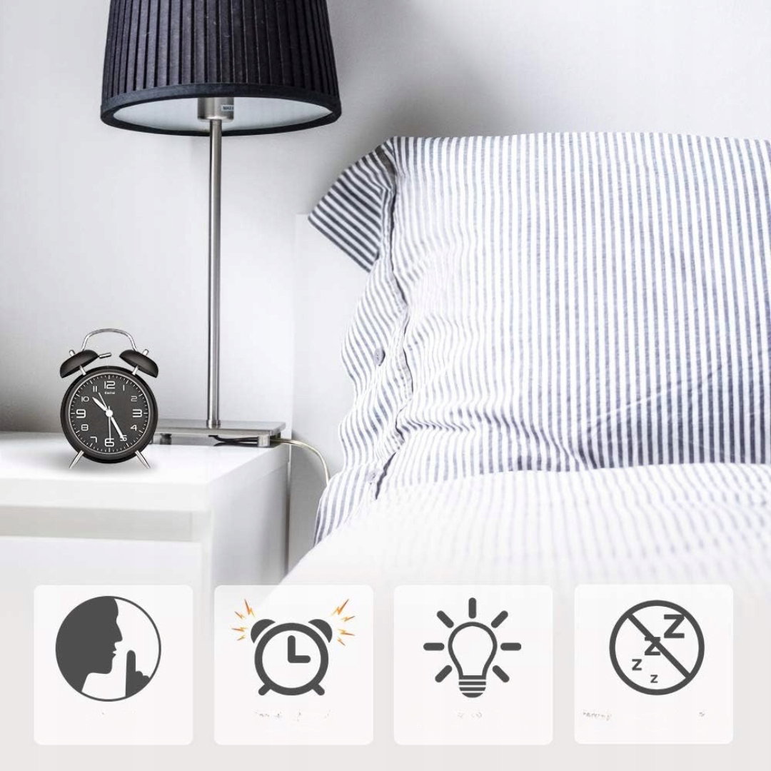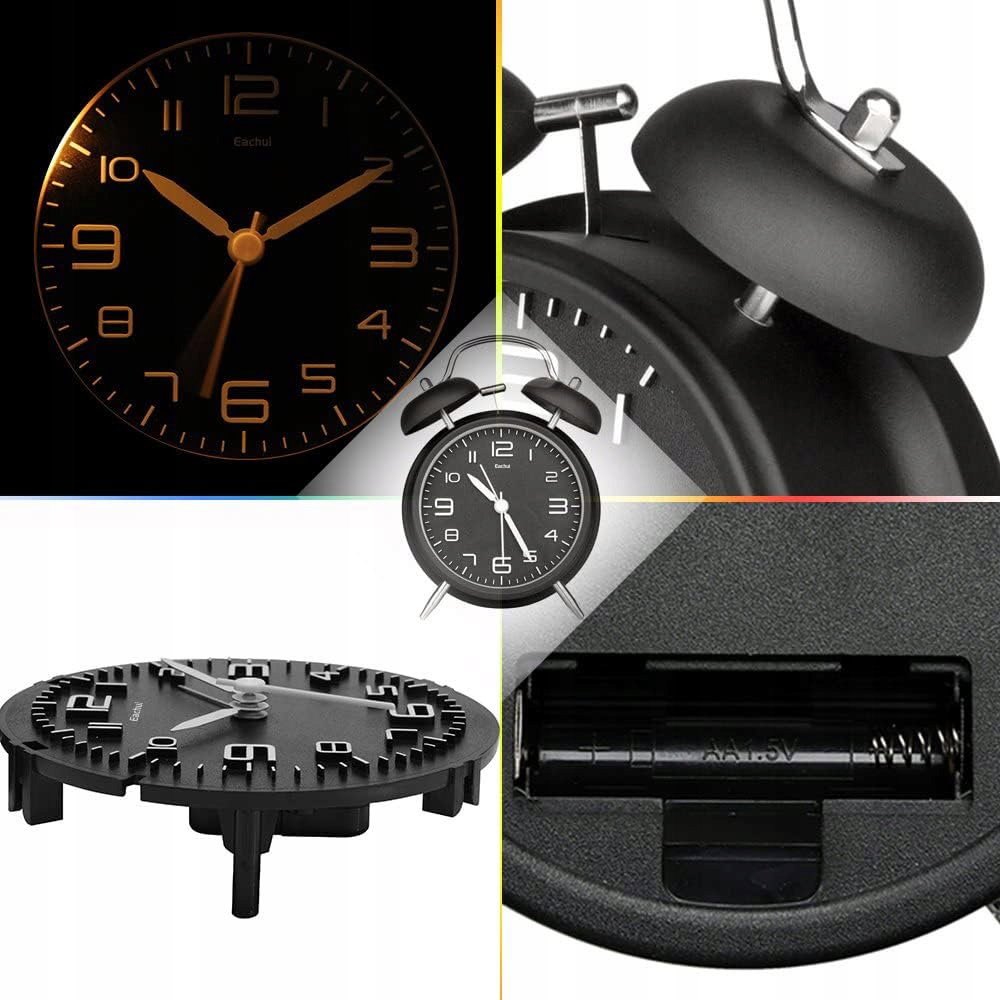 Budzik Retro z Podwójnym Dzwonkiem Zegar z Nocnym Podświetleniem Alarm