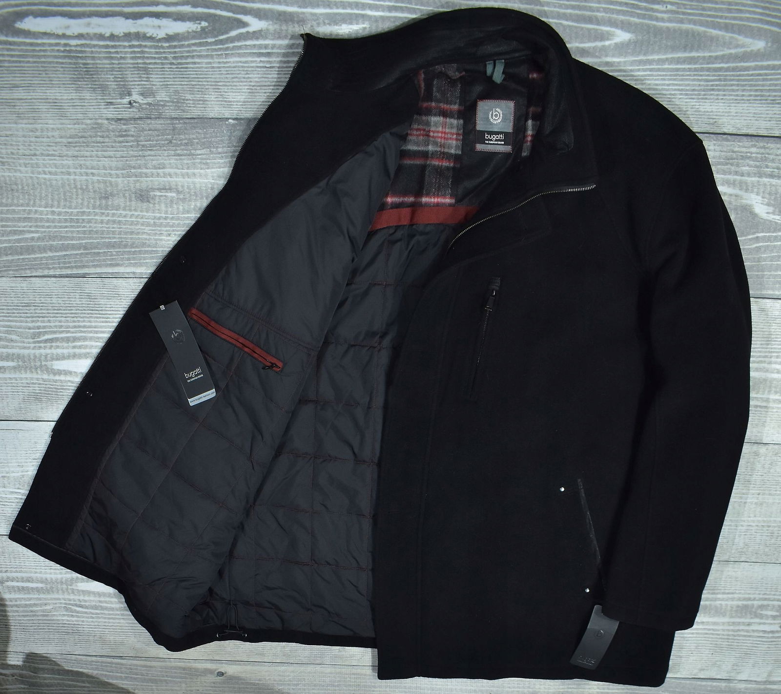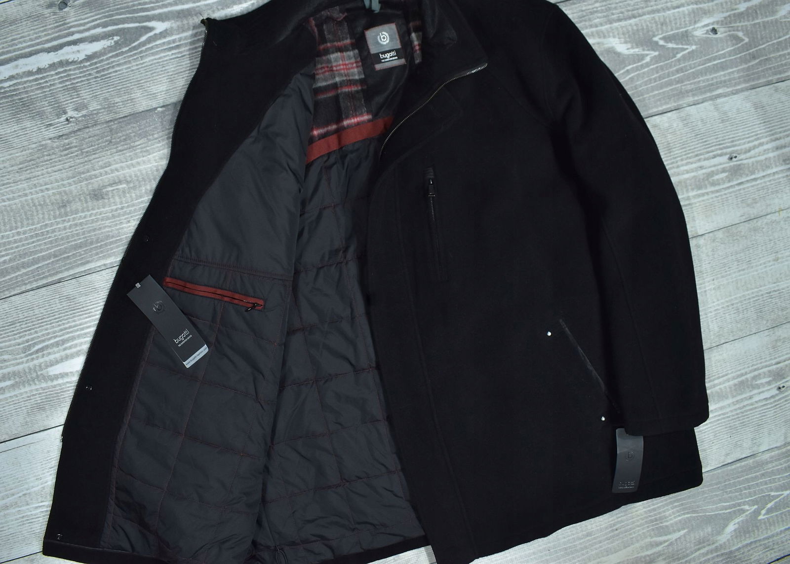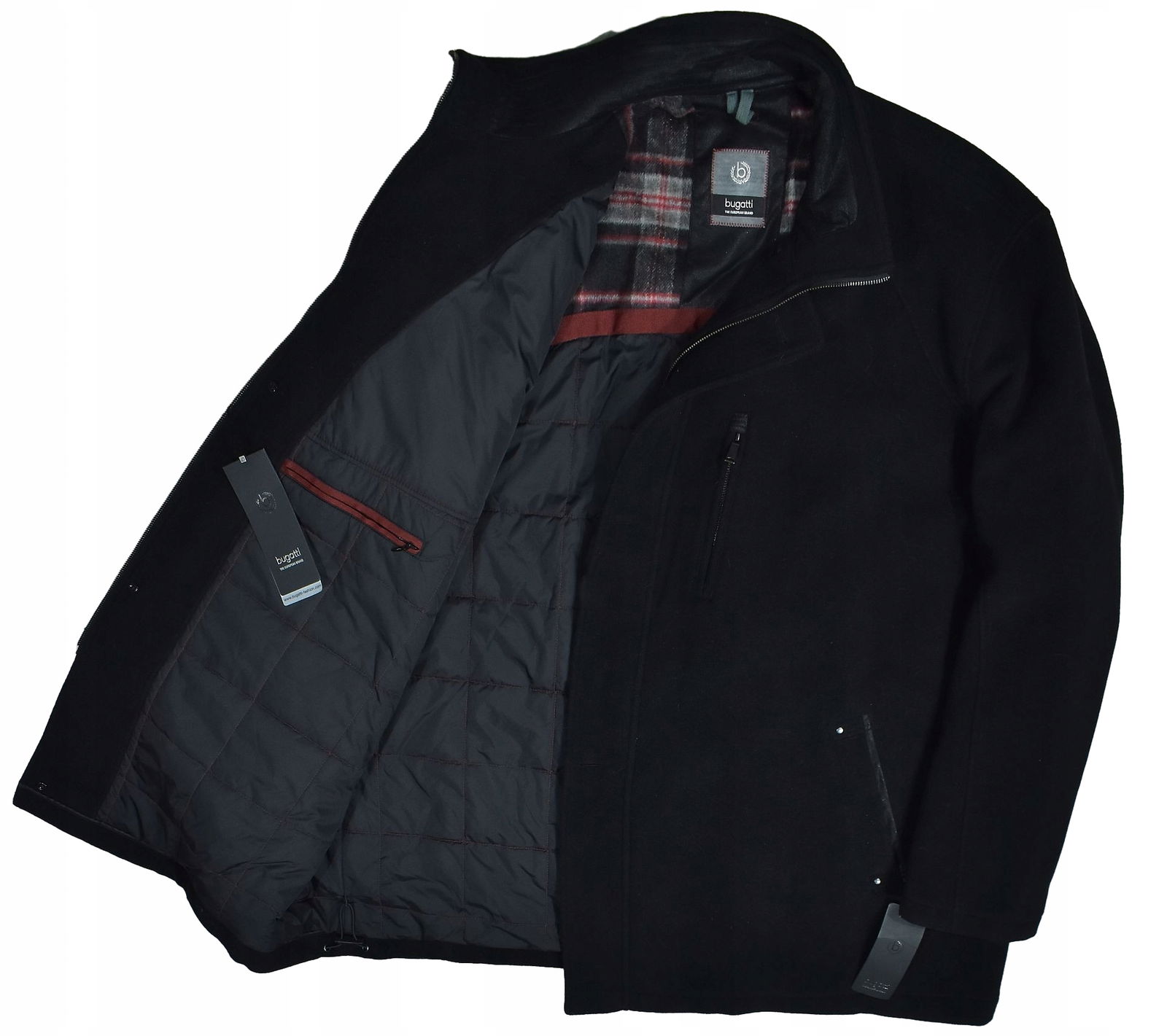 BUGATTI Czarny Wełniano Kaszmirowy Płaszcz Męski Plus Size 70