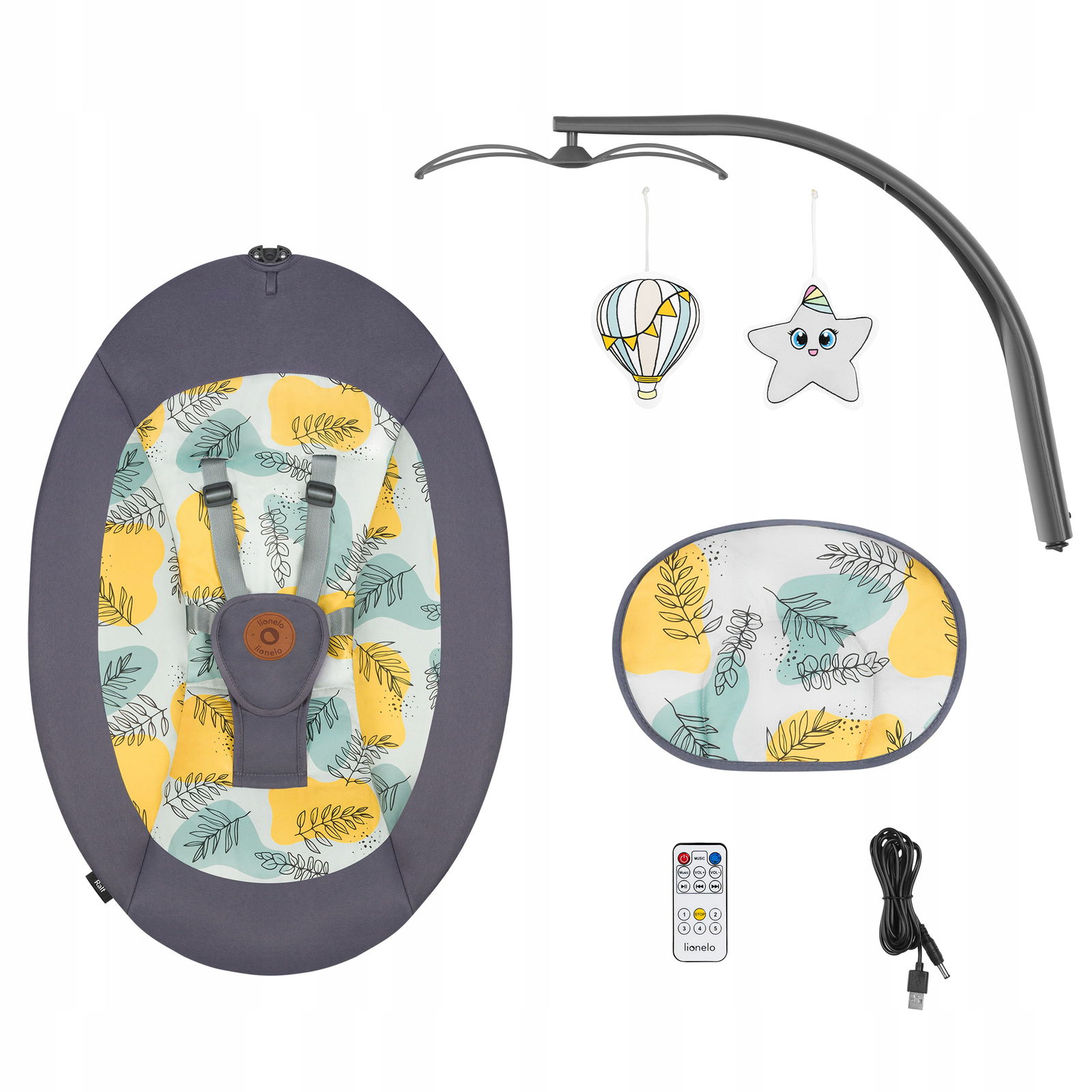 - Możliwość odtwarzania muzyki — 12 kojących melodii