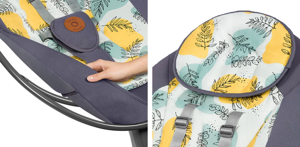 Bujaczek-leżaczek Lionelo Ralf ma blokadę, dzięki której łatwo przekształcisz go z huśtawki w leżaczek. Dziecko może w nim przebywać w pozycji leżącej, lub półleżącej, ponieważ produkt ma możliwość dwustopniowej regulacji pochylenia oparcia.