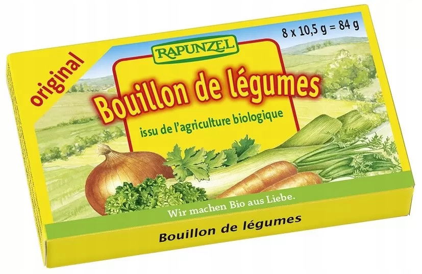 Ekologiczne kostki rosołowe. Dzięki oryginalnej mieszance przypraw i suszonych warzyw, idealnie nadają się jako dodatek do zup i sosów. Bez dodatku cukrów. Zawiera naturalnie występujące cukry.