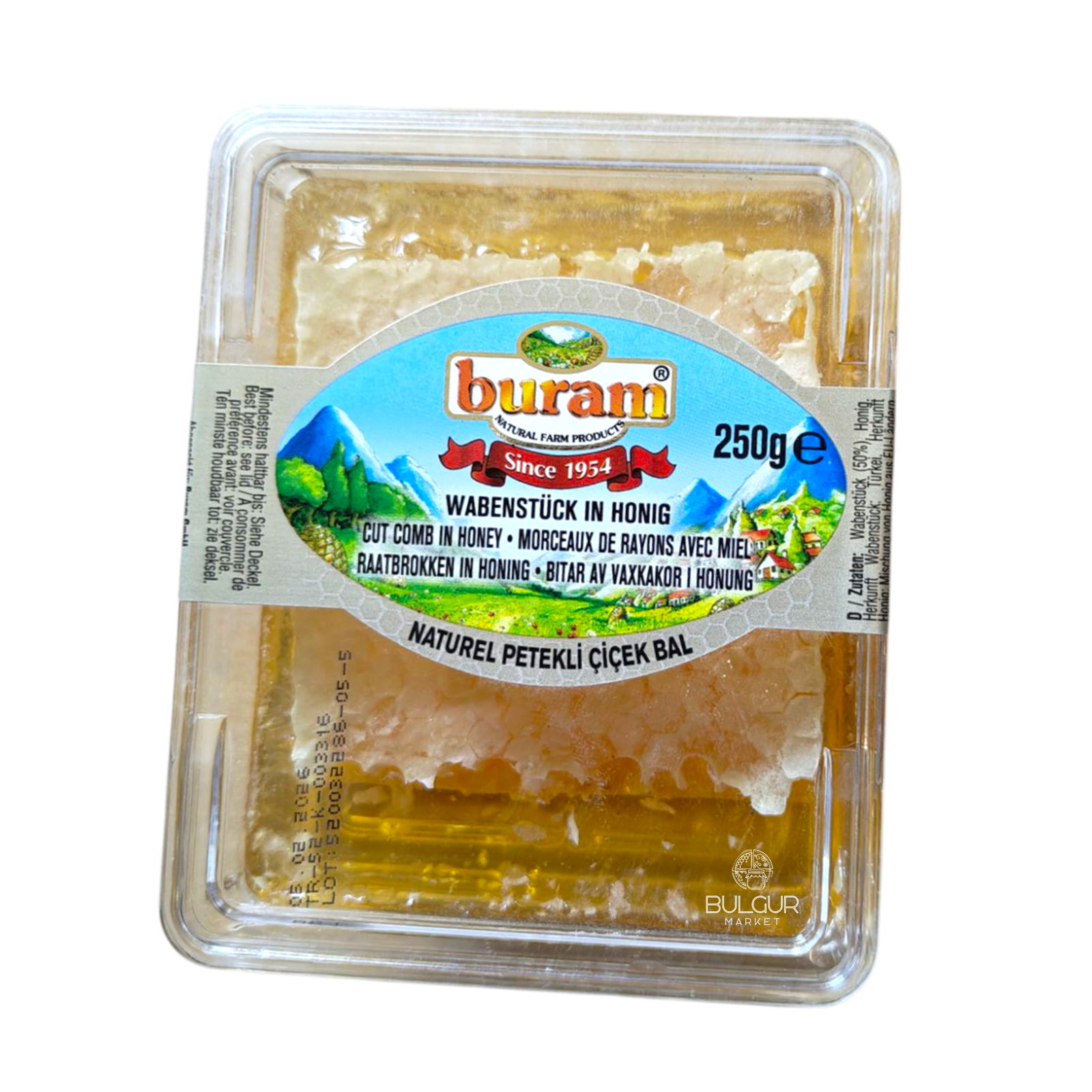 Buram Miód wielokwiatowy z plastrem 250g to naturalny, nieprzetworzony miód w formie plastra, bezpośrednio z ula. Produkt zawiera wysokiej jakości miód wielokwiatowy zamknięty w wosku pszczelim, który można spożywać w całości – łącznie z plastrem. To źródło naturalnych enzymów, pyłków i wartości odżywczych, których nie znajdziesz w zwykłym płynnym miodzie.