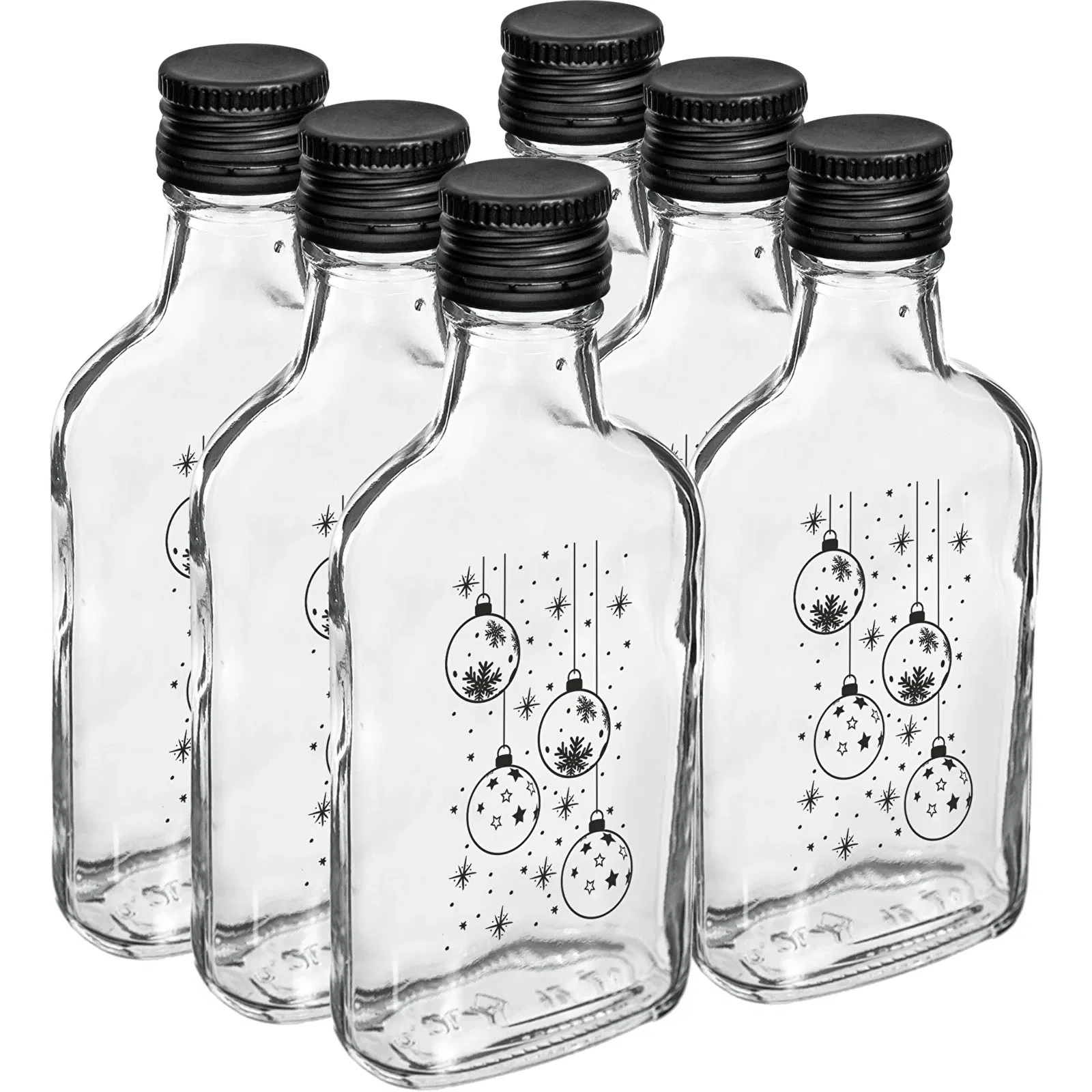 Butelka 200 ml z zakrętką, nadruk Świąteczne bombki, 1szt.
