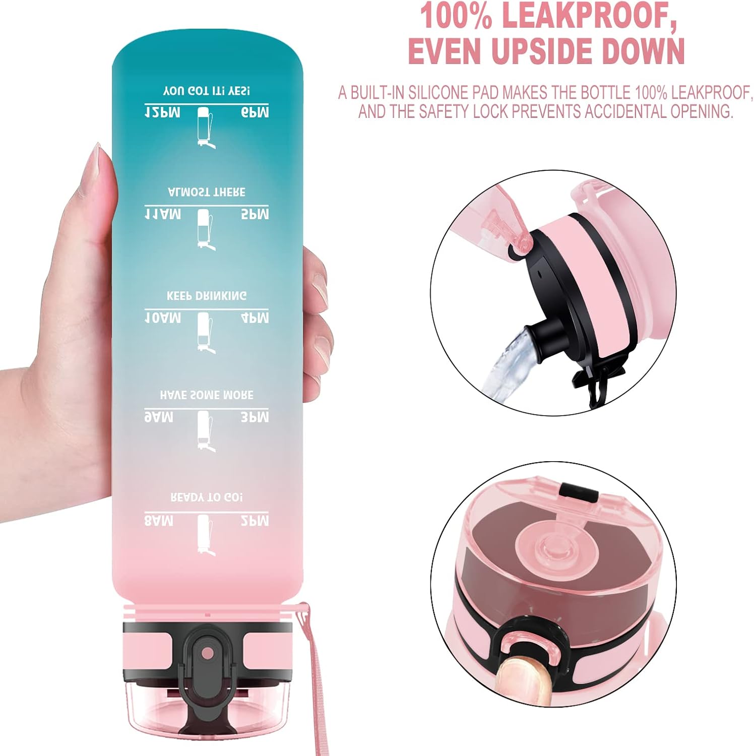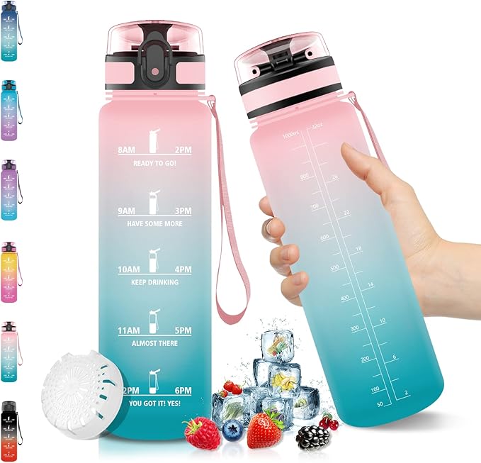 Materiał przyjazny dla środowiska i bezpieczny: butelka do picia o pojemności 1000 ml wykonana jest z bezpiecznego dla żywności, przyjaznego dla środowiska tworzywa sztucznego Tritan, jest w 100% nietoksyczna i wolna od BPA (bisfenolu A), bezwonna i zdrowa do codziennego picia wody.
