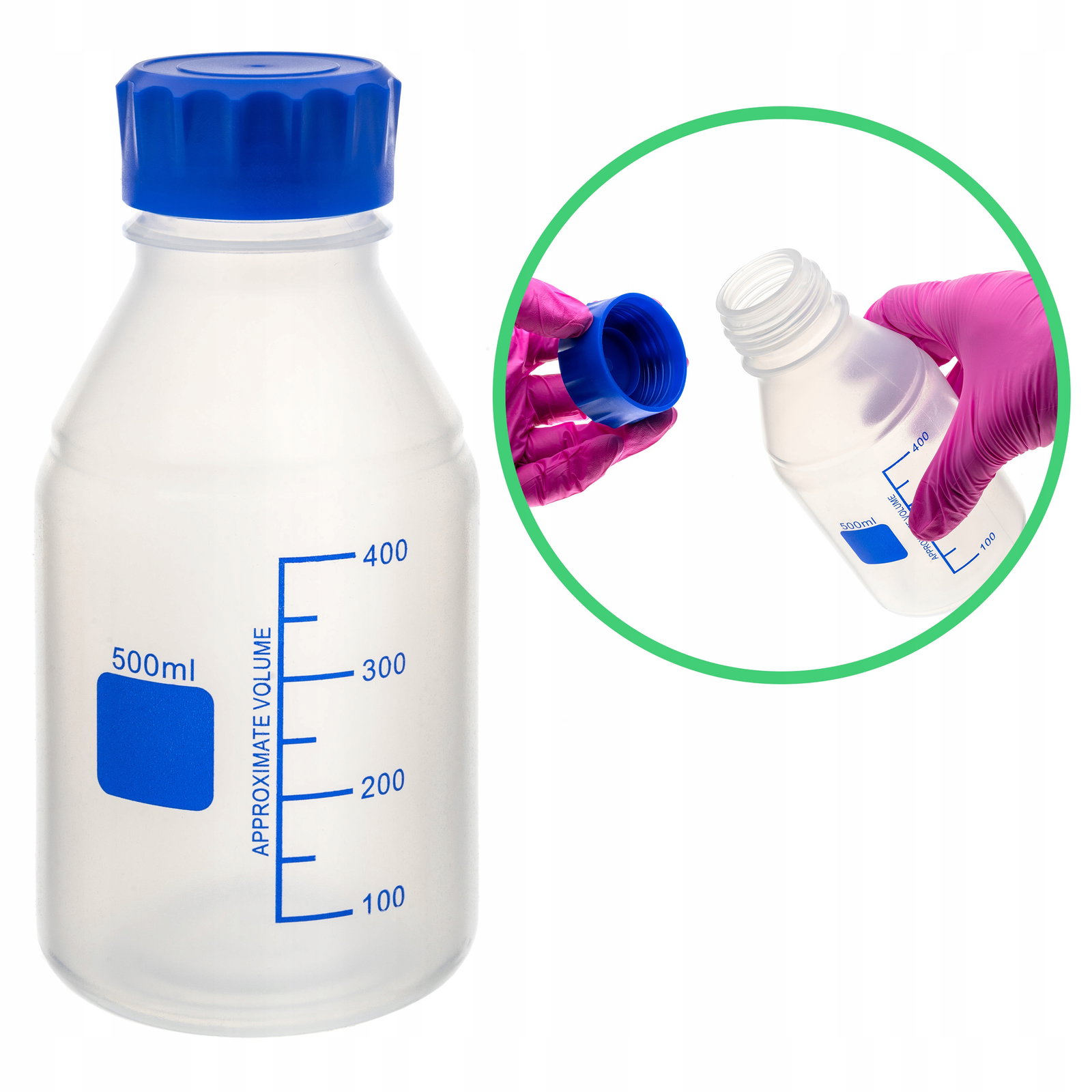 Butelka laboratoryjna plastikowa PP z nakrętką GL45 poj. 500 ml skalowana