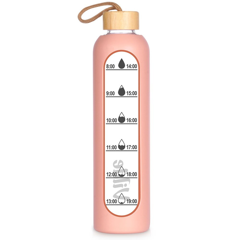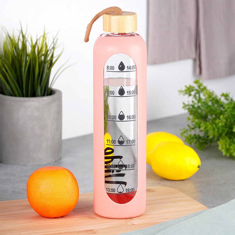 Motywacja do regularnego picia wody - Butelka posiada miarkę czasową, która pomaga śledzić ilość wypijanej wody w ciągu dnia. Stylowe oznaczenia motywują do regularnego nawodnienia.