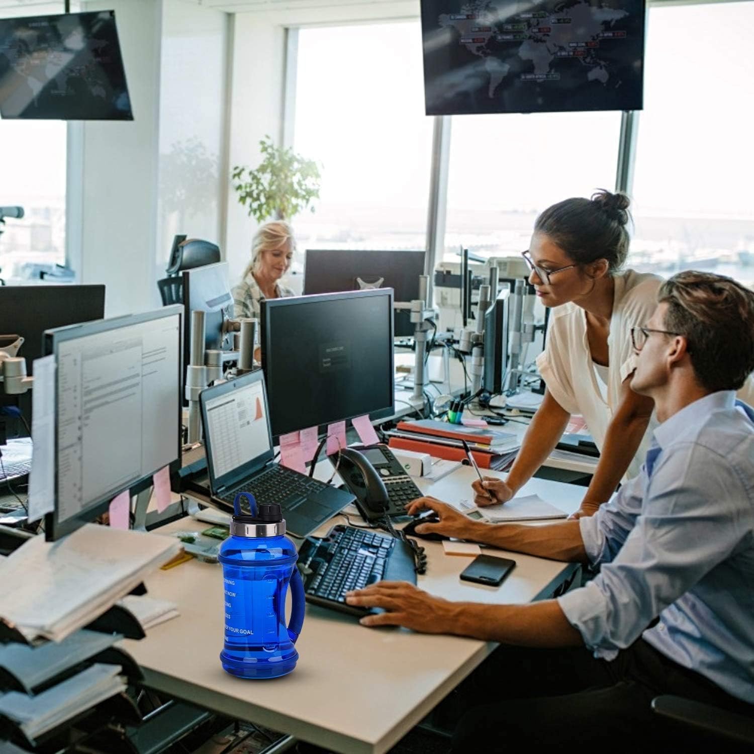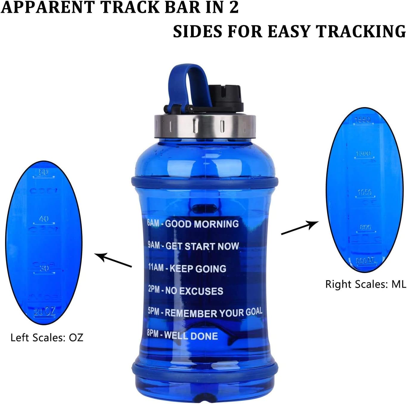 Butelka motywująca niebieska 2.2L miękki gumowy uchwyt szczelna