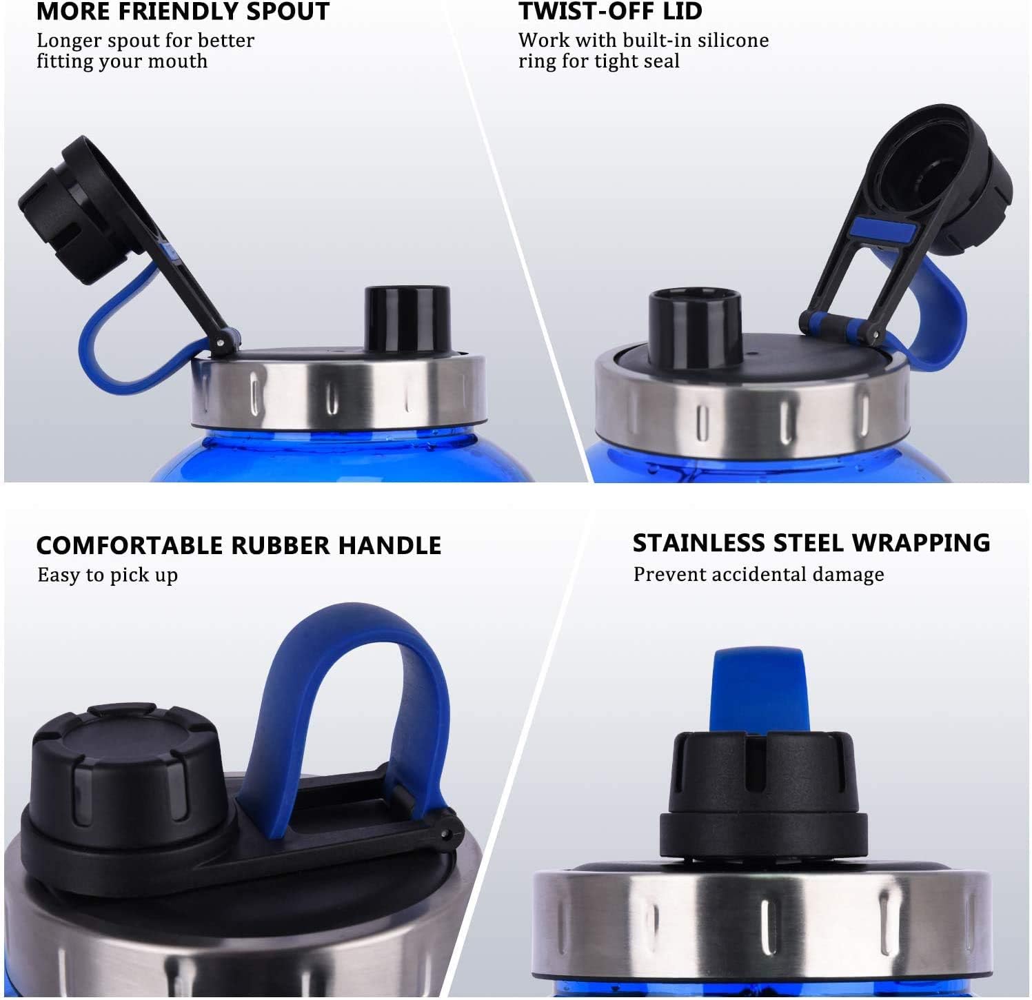 Wyposażona w pokrywę ze stali nierdzewnej oraz duży, wygodny uchwyt, zapewnia komfort użytkowania. Duży otwór ułatwia napełnianie oraz czyszczenie butelki. Mechanizm szczelny gwarantuje bezpieczeństwo i brak wycieków.