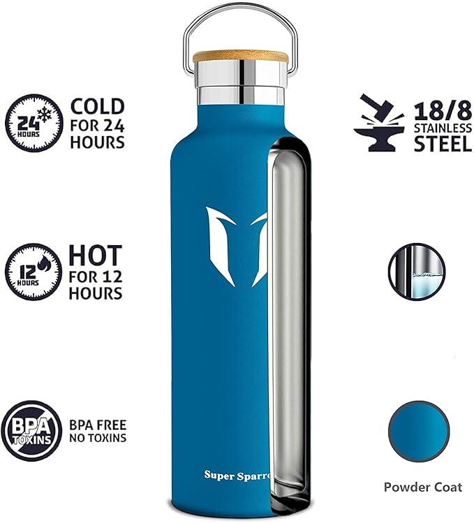 MATERIAŁ BEZ BPA - większość tańszych plastikowych butelek na wodę wysysa chemikalia i zmienia smak napoju po napełnieniu. Butelka na wodę Super Sparrow ze stali nierdzewnej jest produkowana przy użyciu najwyższej jakości stali nierdzewnej bez BPA, ftalanów, ołowiu lub innego materiału toksycznego, dzięki czemu jest to najbezpieczniejsza butelka na wodę, która nie wysysa chemikaliów!.