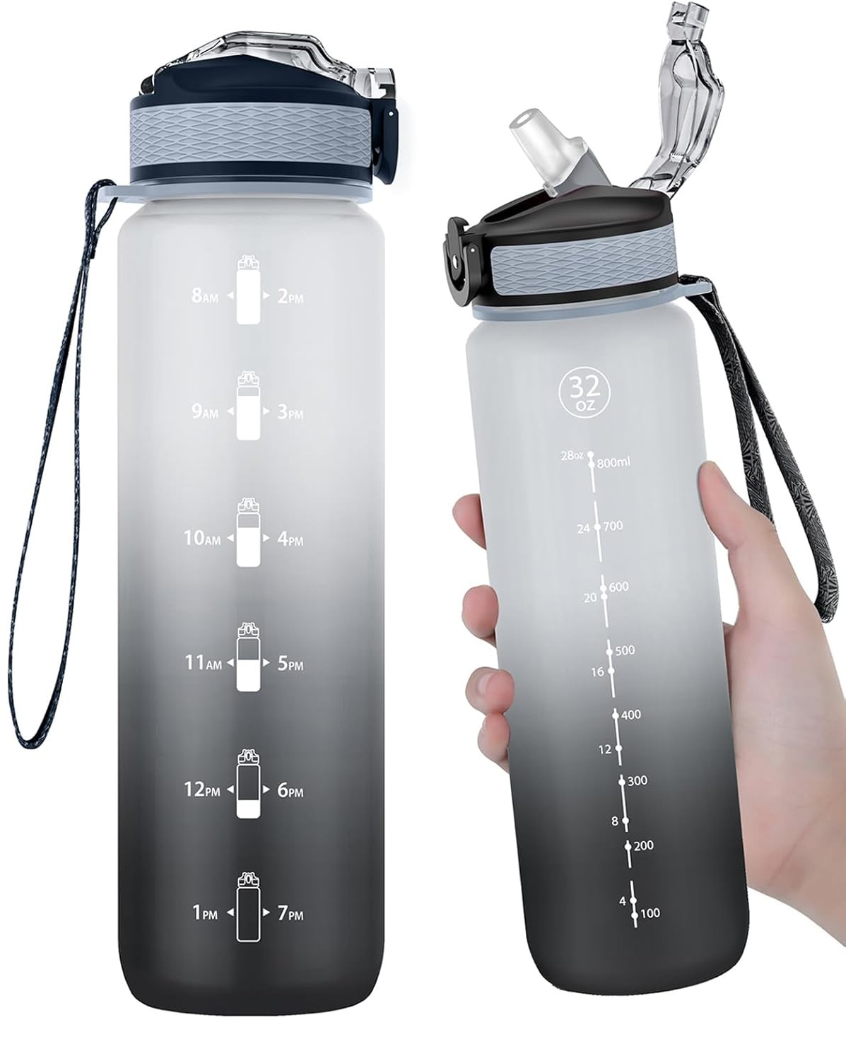 Butelka sportowa 1L z słomką czarna/szara EYQ
