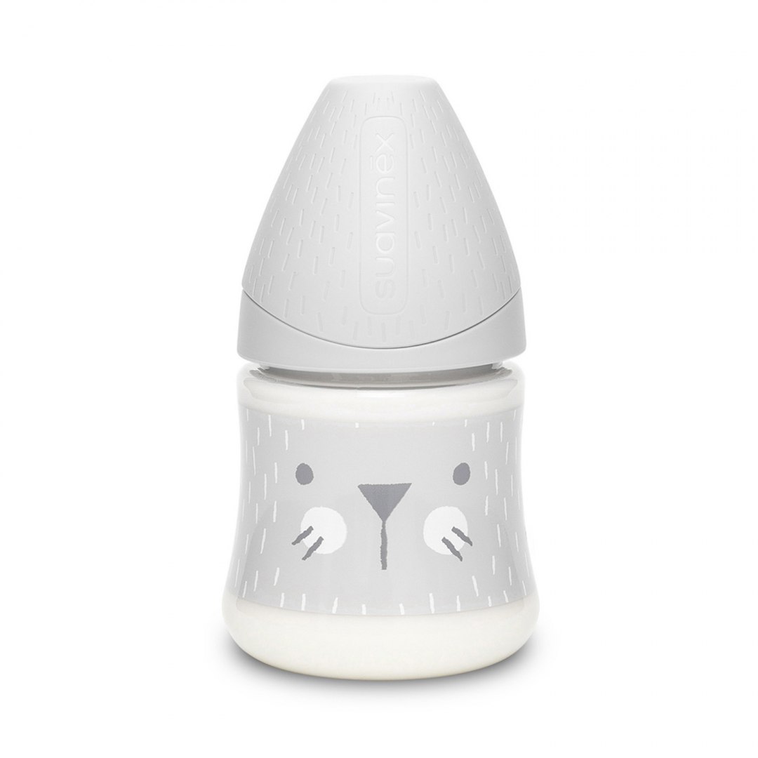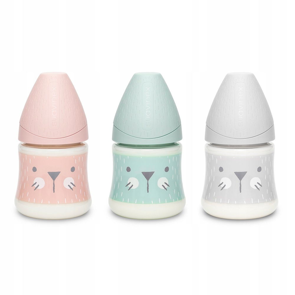 Butelka posiada szeroką szyjkę, co ułatwia czyszczenie, oraz przezroczyste ścianki. Istnieje możliwość wymiany smoczka na inny model Suavinex lub zamianę butelki w kubek dzięki silikonowemu ustnikowi.