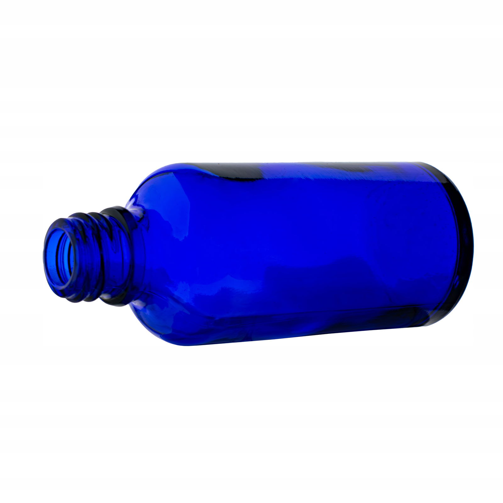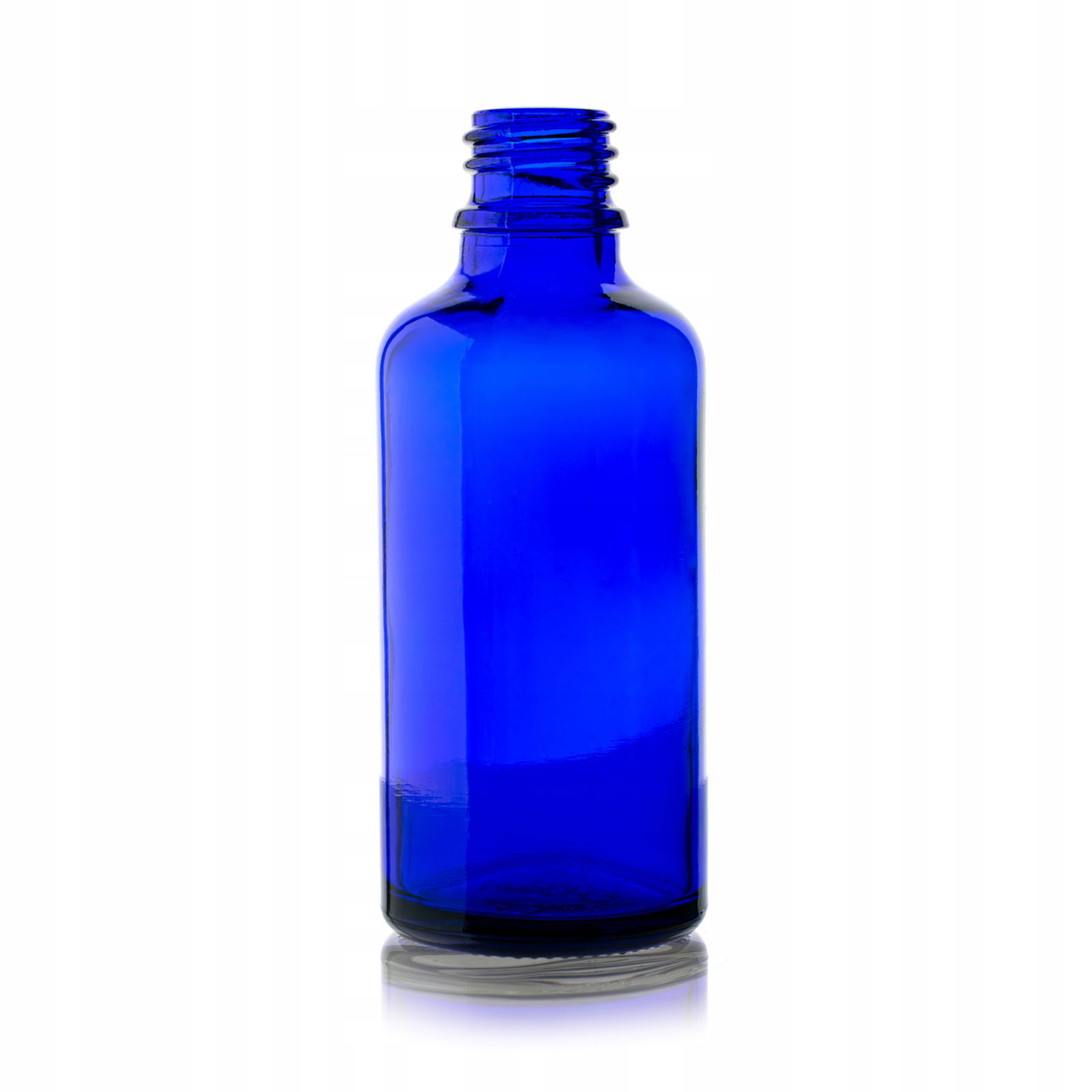Niebieska butelka szklana o pojemności 50 ml z gwintem 18/415.