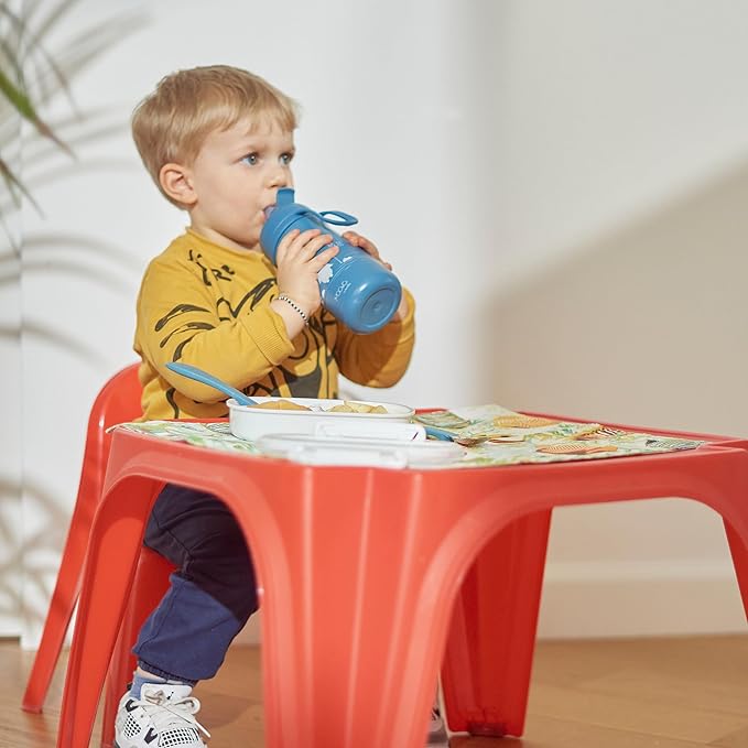 Butelka wykonana jest z wysokiej jakości materiałów, wolnych od BPA, co gwarantuje bezpieczeństwo i trwałość produktu. Podwójne ścianki termiczne utrzymują temperaturę napoju przez wiele godzin, a silikonowy dziobek oraz słomka ułatwiają picie nawet najmłodszym dzieciom. Praktyczny, szczelny korek chroni przed rozlaniem, a ergonomiczny kształt i lekka konstrukcja sprawiają, że butelka idealnie leży w dziecięcej dłoni.
