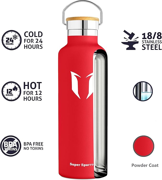 Konstrukcja z podwójnymi ściankami - nasza butelka ze stali nierdzewnej jest wykonana z trwałych materiałów, dzięki czemu butelka wytrzyma najcięższe treningi! Utrzymaj ciepło swoich gorących napojów, takich jak kawa czy herbata, aż do 12 godzin, a zimnych napojów chłodnych aż do 24 godzin dzięki prawdopodobnie najlepszej i najnowocześniejszej butelce termosowej na rynku, idealnej do treningów i uprawiania sportu na świeżym powietrzu!