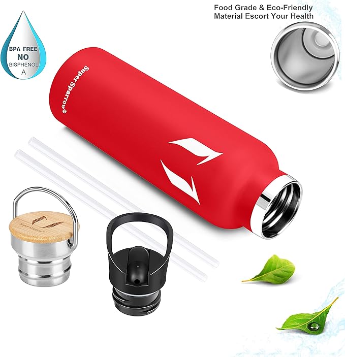 2 WYMIENNE NAKRĘTKI - (1) Sportowa nasadka bez wysiłku zapewnia wysoki przepływ, dzięki czemu można łatwo pić z butelki bez zdejmowania nakrętki, (2) Bambusowa zakrętka pozwala na łatwe przenoszenie lub przymocowanie do plecaka w większości przypadków atrakcyjny wygląd! Zabierz go ze sobą na wędrówki, trekking, kemping lub na siłownię.