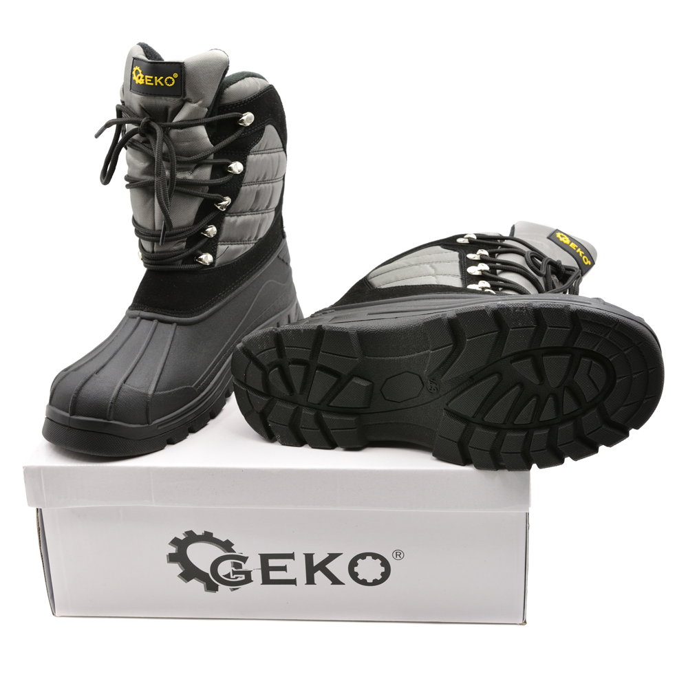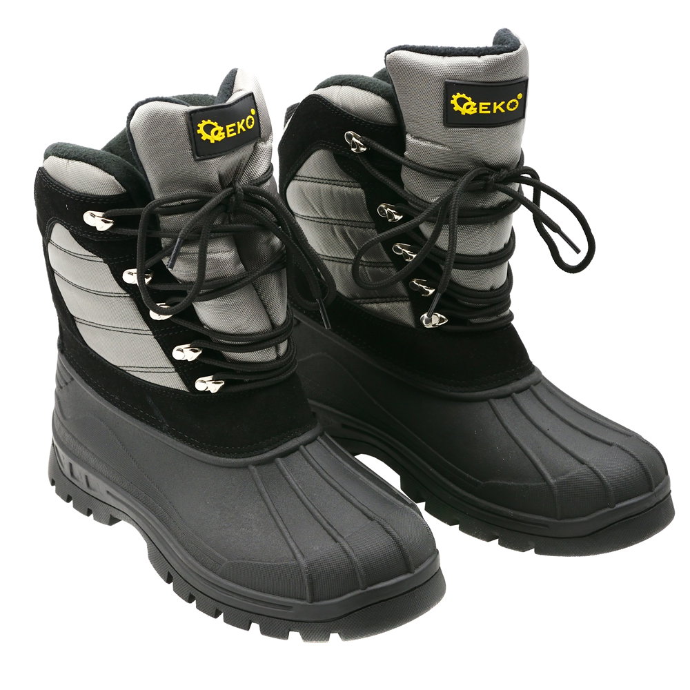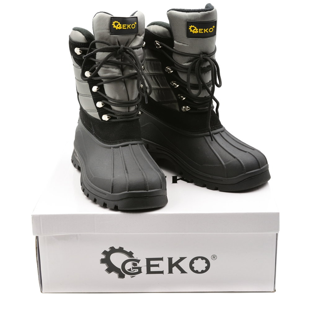 Wodoodporne buty „śniegowce” renomowanej marki GEKO. Dolna część cholewki oraz podeszwa wykonane zostały z wysokiej jakości termokauczuku charakteryzującego się bardzo dobrą przyczepnością, a dzięki dużej elastyczności nie krępują ruchów oraz nie stawiają oporu podczas zginania.