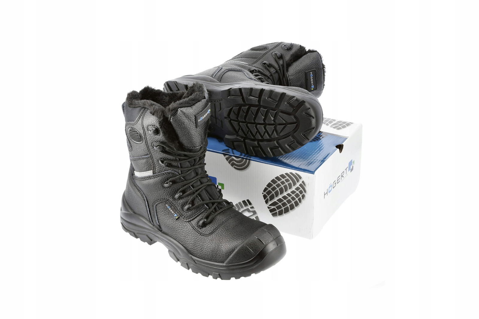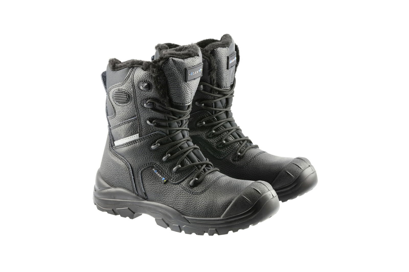 Wysokiej jakości trzewiki zimowe Hoegert Wetter S3 zostały wykonane z naturalnej skóry bydlęcej. Miękka, futrzana wyściółka zapewnia ciepło i wysoki komfort użytkowania. Zastosowany stalowy podnosek i płyta antyprzebiciowa dodatkowo chronią stopę przed urazami. Antypoślizgowa podeszwa klasy SRC została wykonana z poliuretanu. Jest odporna na olej i węglowodory. Wysoka konstrukcja buta stabilizuje kostkę zmniejszając ryzyko urazów.