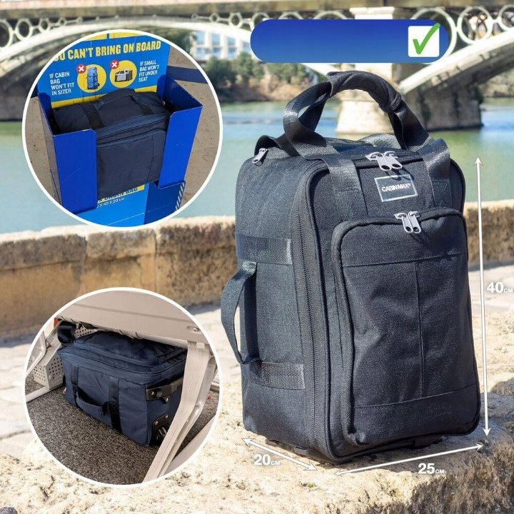 Zaskakująco pojemny bagaż podręczny z wewnętrznym schowkiem na iPada. Idealna, lekka, kompaktowa torba podróżna. Bagaż podręczny 40 x 20 x 25 cm.