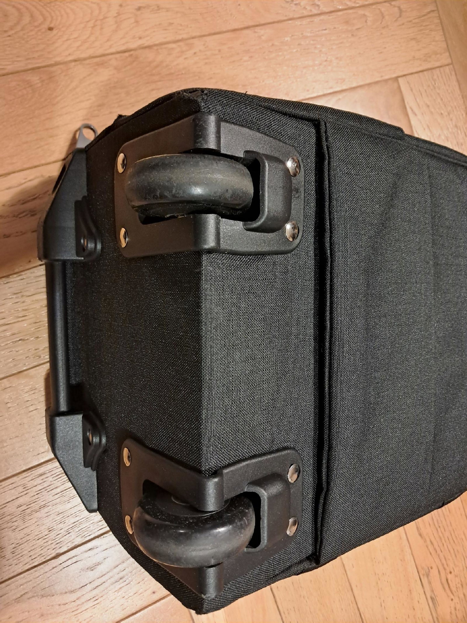 Produkt używany, widoczne ślady użytkowania, przetarcie przy kółkach (ostatnie zdjęcia), zamki, rączka, kółka sprawne.