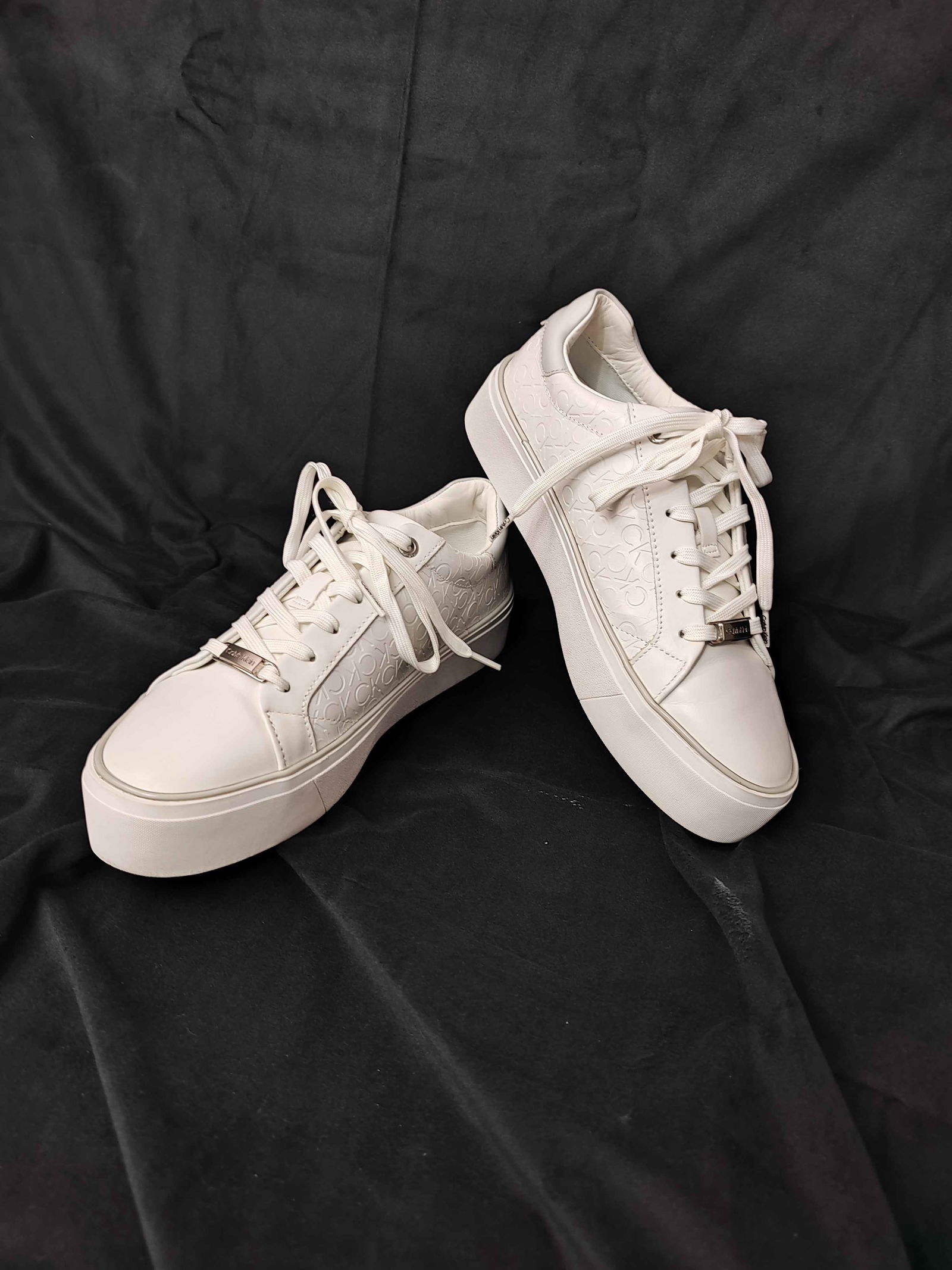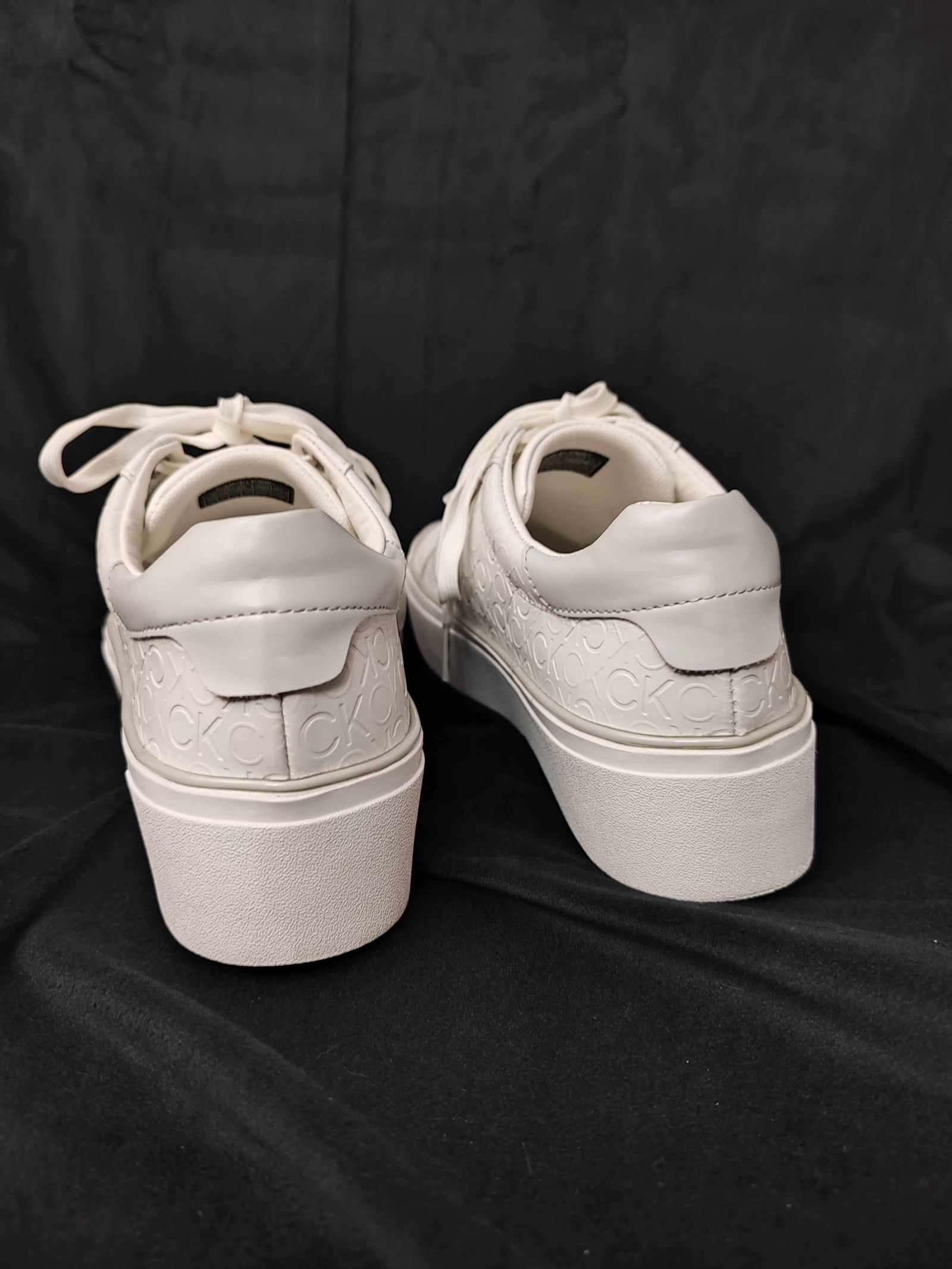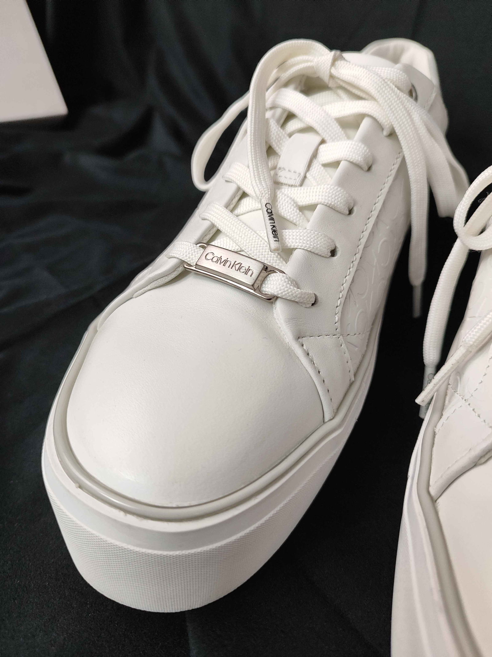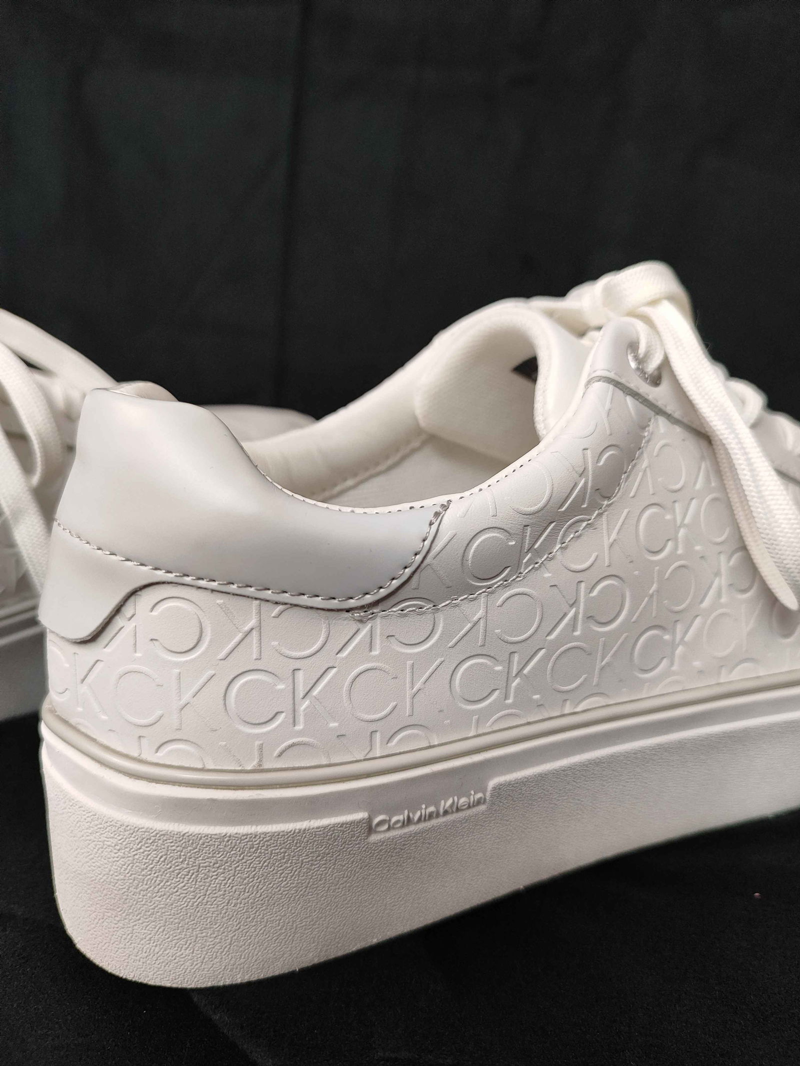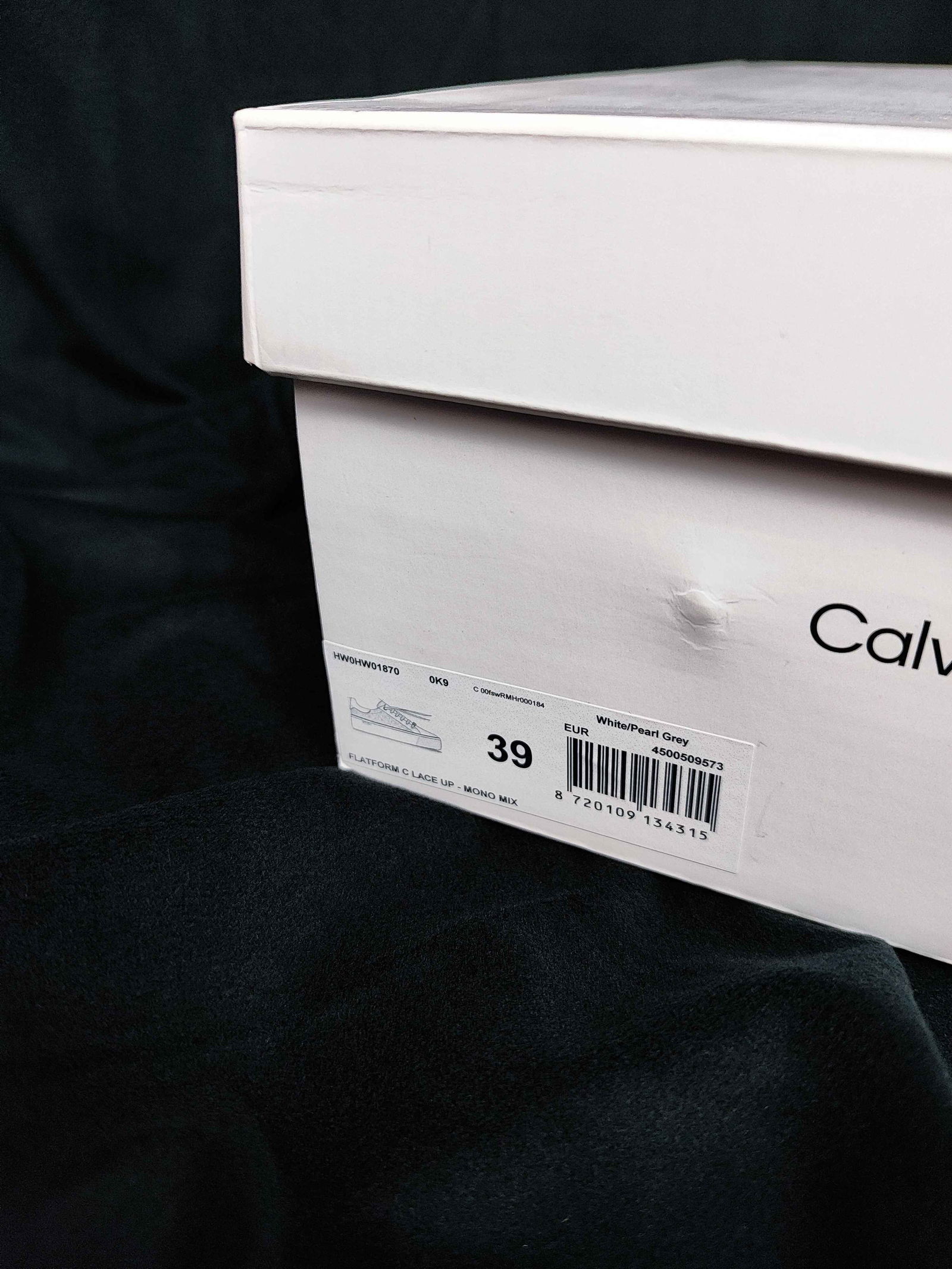 Model Calvin Klein Flatform C Lace Up – Mono Mix to nowoczesne sneakersy damskie na podwyższonej platformie, łączące sportową formę z minimalistyczną estetyką. Jednolita, jasna kolorystyka oraz masywna podeszwa nadają im wyrazisty, modowy charakter, zachowując jednocześnie uniwersalny styl na co dzień.