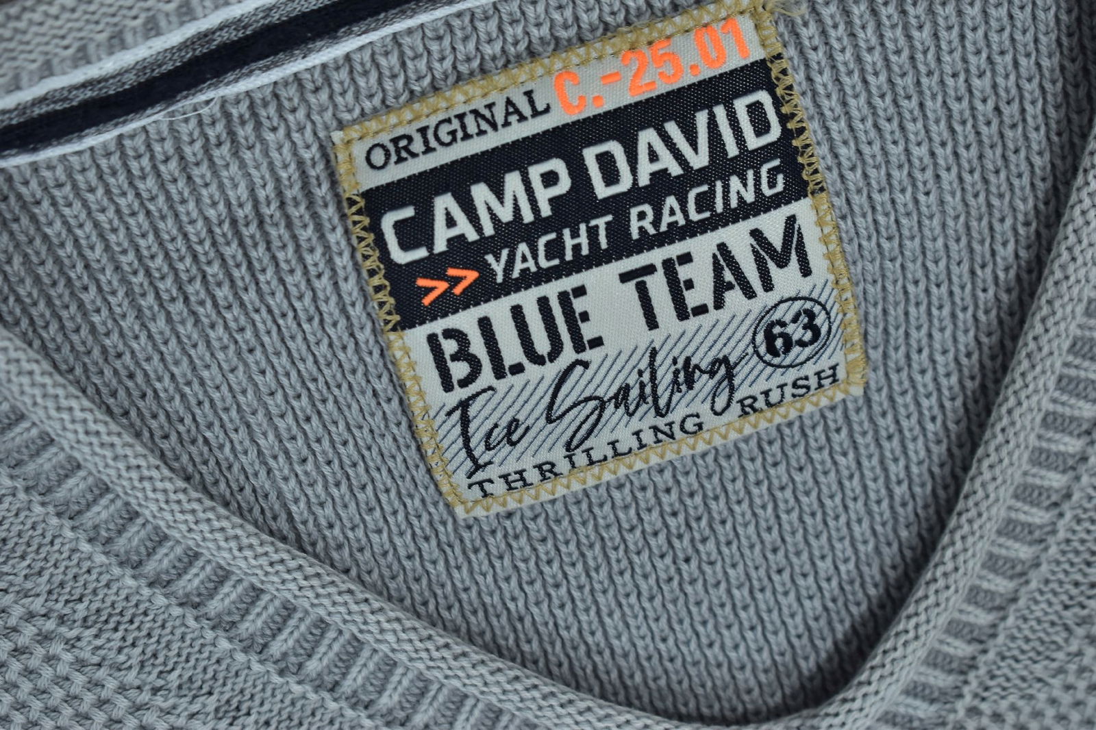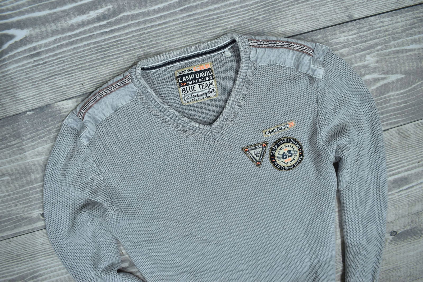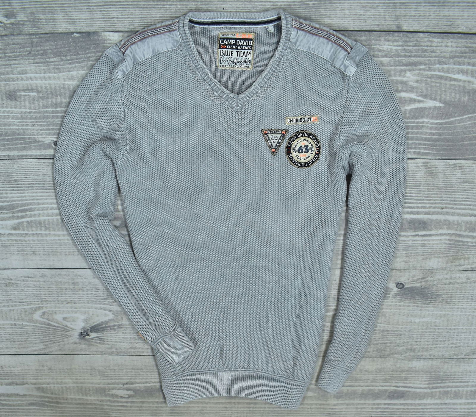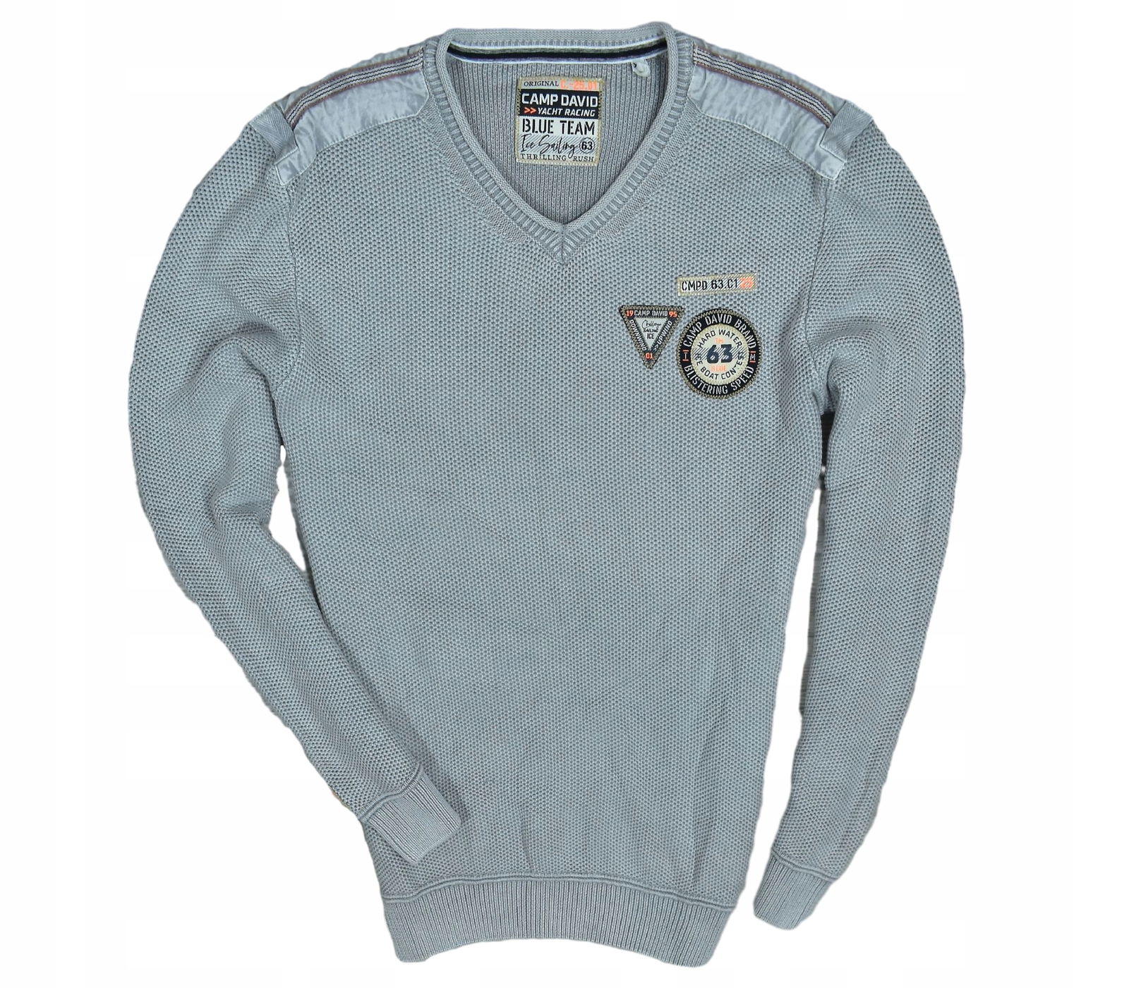 CAMP DAVID Szary Sweter Męski z Naszywkami XL