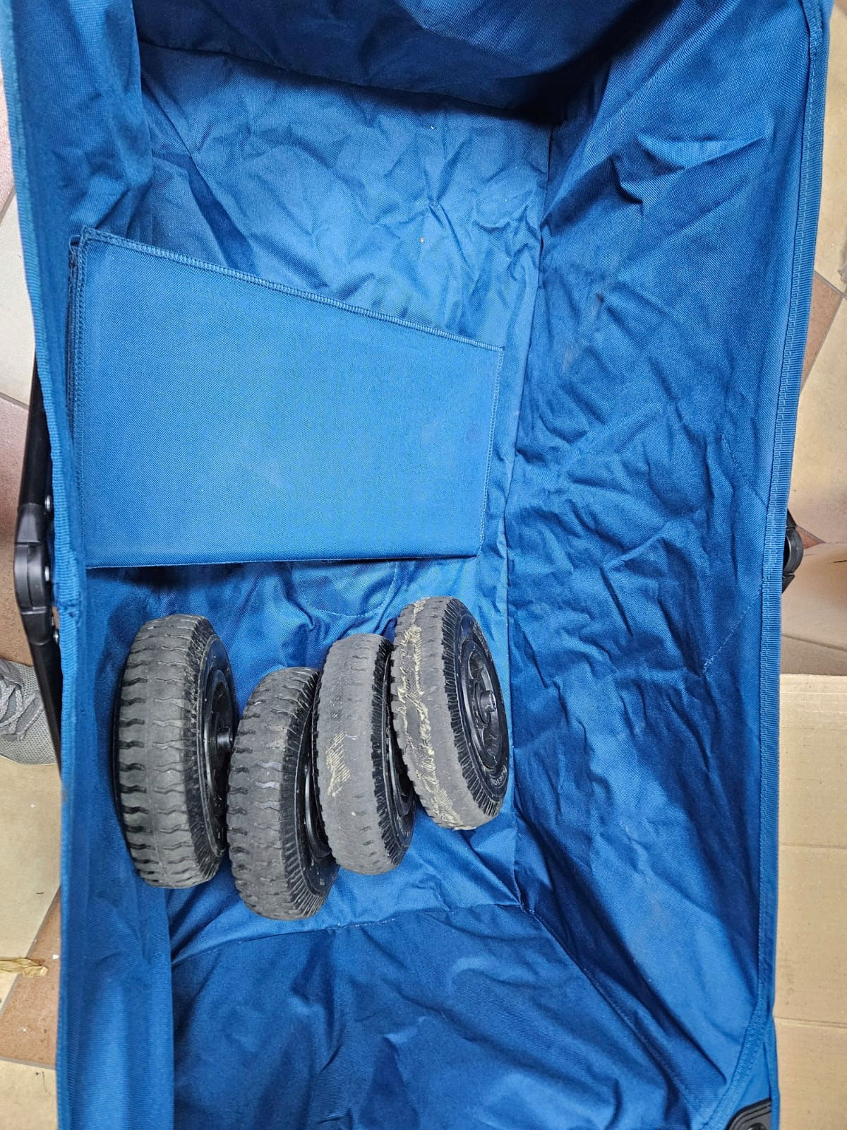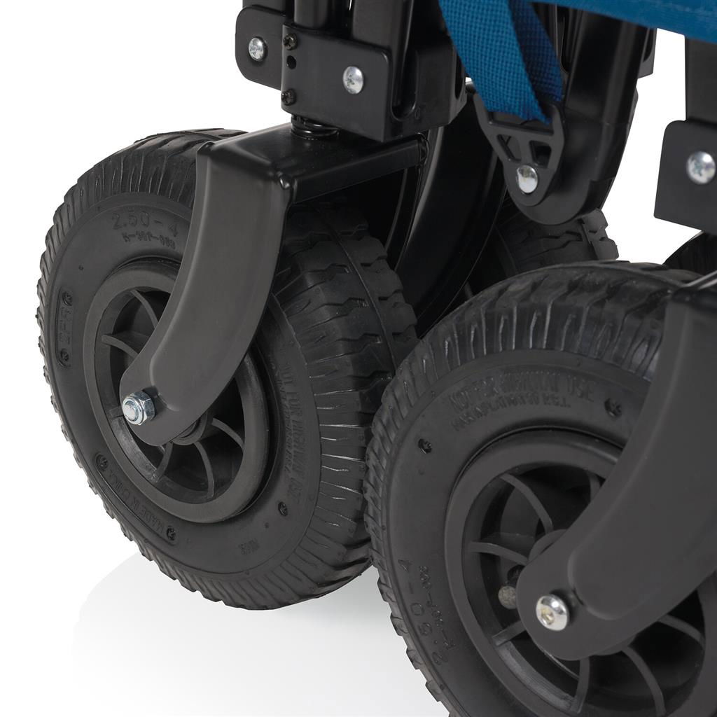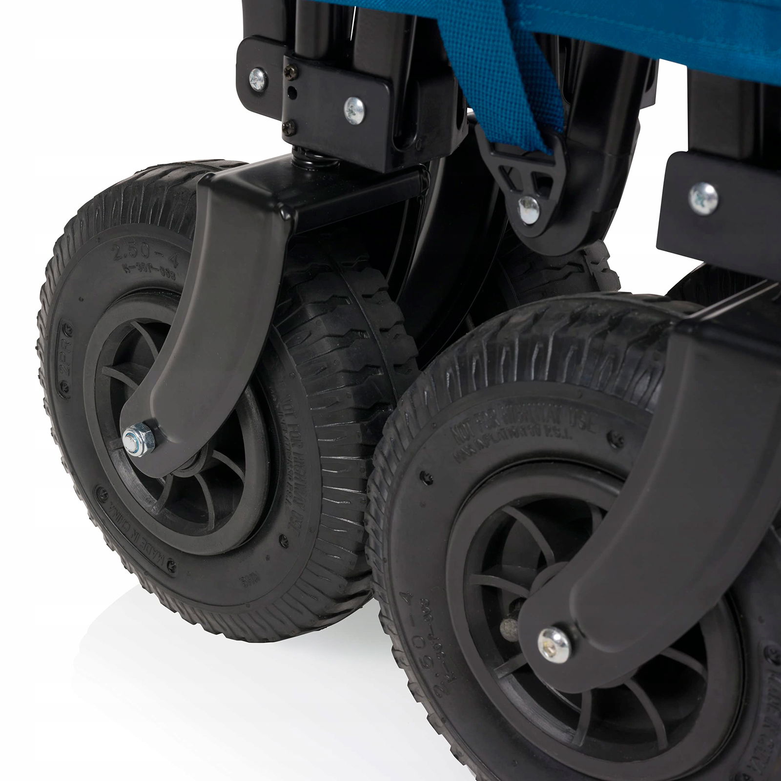- Wózek z pompowanymi oponami nadaje się na kemping, do ogrodu i na plażę