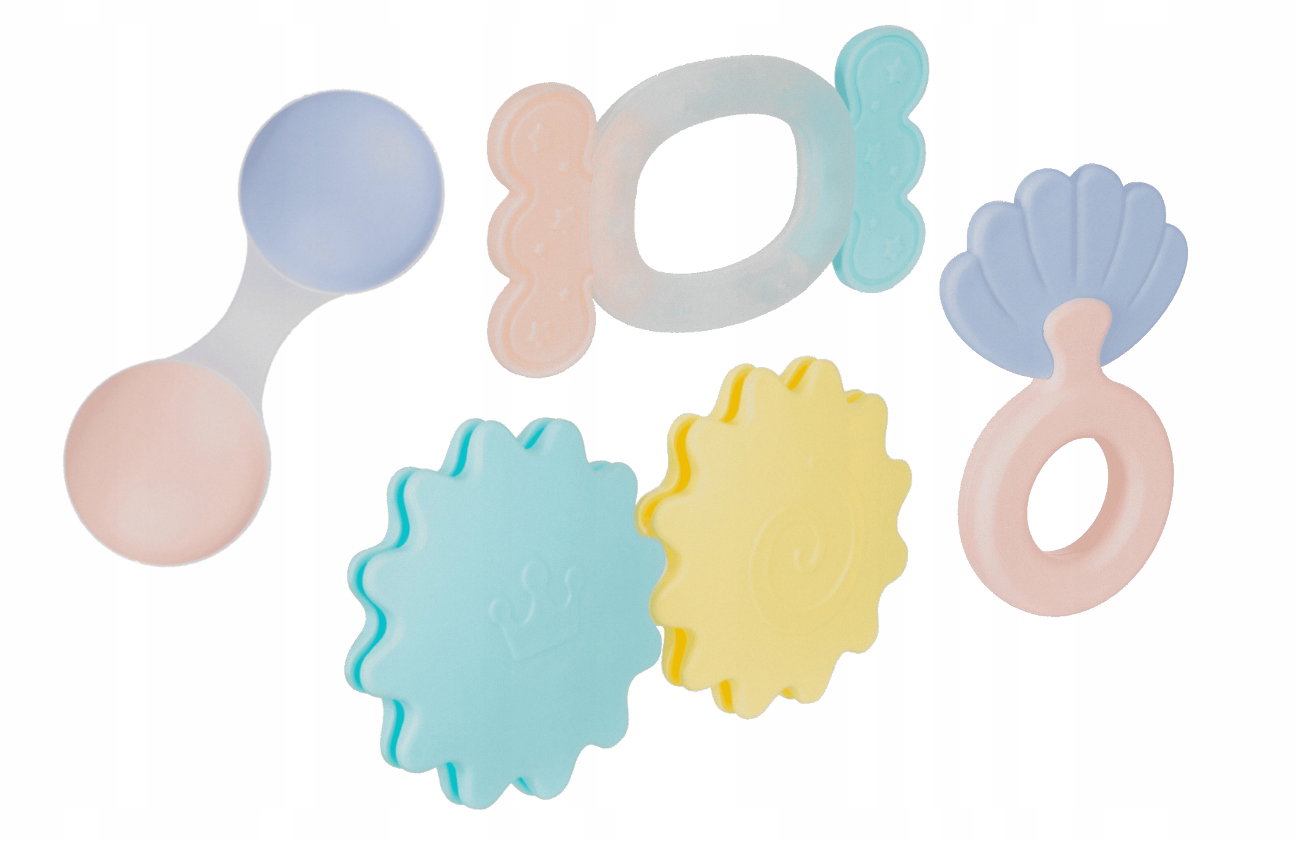 Zestaw pierwszych grzechotek PASTEL to cztery wyjątkowo lekkie i poręczne zabawki, idealnie dopasowane do malutkich rączek. Ich zróżnicowane kształty i pastelowe kolory z pewnością zaciekawią maluszka i zachęcą go do nauki chwytania. Zabawki wyposażone są w elastyczne gryzaki, które przynoszą ulgę podczas ząbkowania, posiadają też przyciągające uwagę i zachęcające do zabawy elementy obrotowe oraz grzechotki. Zestaw idealnie sprawdzi się jako pierwszy prezent dla każdego maluszka!