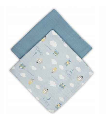 Świetnie sprawdzają się jako okrycie podczas karmienia piersią oraz podkład na ramię rodzica chroniący ubranie przed ulewaniem. Pieluszki przydadzą się również podczas kąpieli, przewijania czy usypiania. Zestaw zawiera 2 sztuki pieluszek: jedna jest zdobiona kolorowymi nadrukami, a druga barwiona jednolicie.