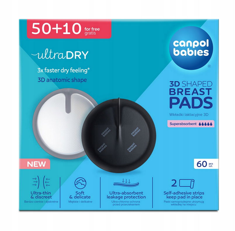 Ultrachłonne wkładki laktacyjne Canpol babies zapewniają ochronę i wyjątkowe 3x szybsze uczucie suchości i świeżości w dzień i w nocy. Są bardzo cienkie, dzięki czemu są dyskretne i niewidoczne pod bielizną i ubraniem.