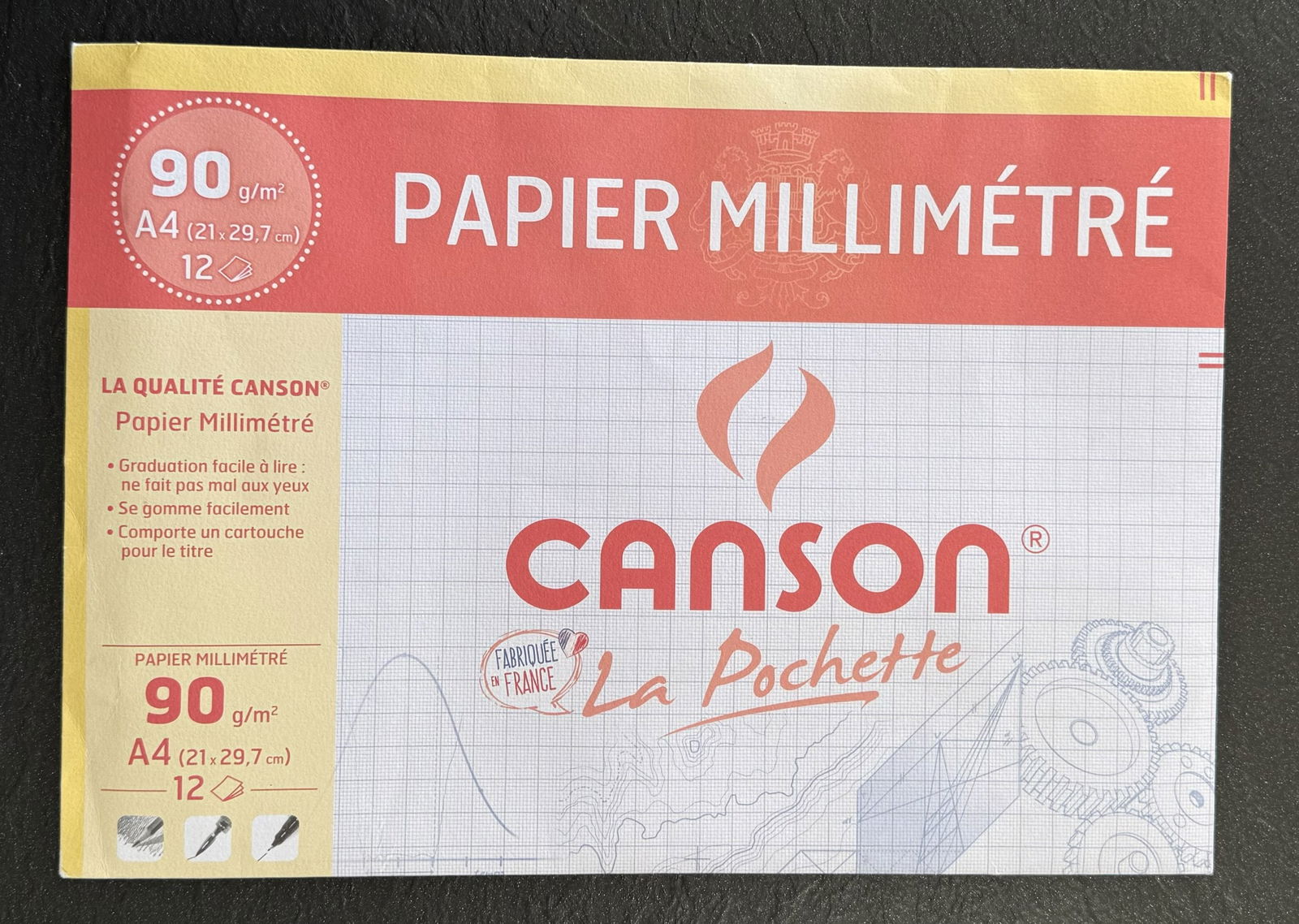 Papier milimetrowy od marki Canson, świetny do ćwiczenia pisma i tworzenia dokładnych projektów technicznych.