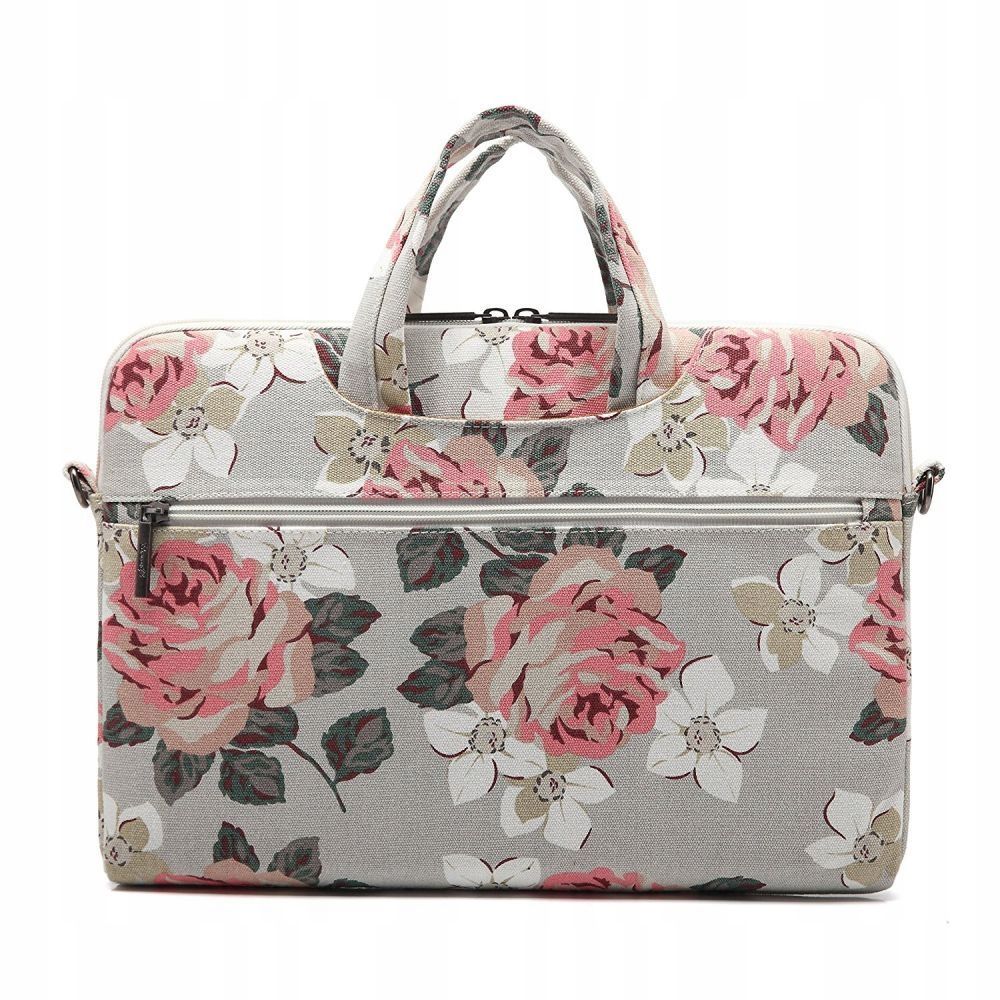 Ozdobione stonowanym kwiatowym wzorem nadającym mu kobiecą stylizację. Torba charakteryzuje się wysoką ochroną oraz swoją praktycznością. Wnętrze pokrowca wyłożone jest grubą warstwą miękkiego materiału, który utrzymuje, a zarazem chroni urządzenie podczas wstrząsów.